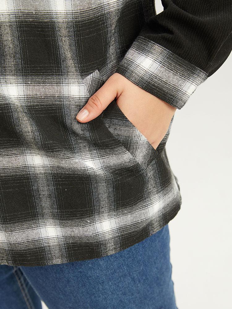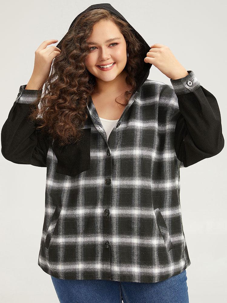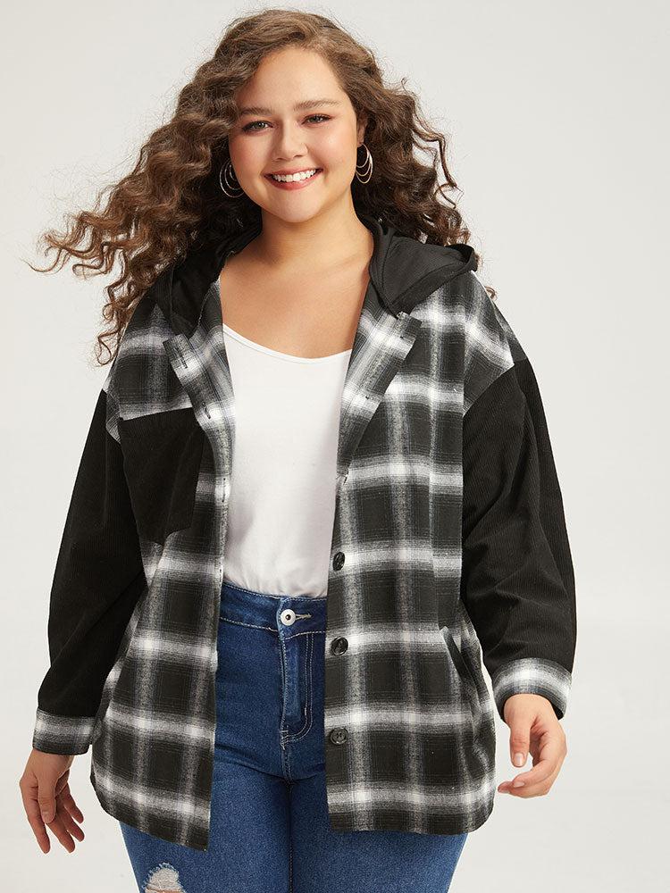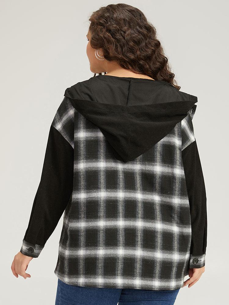 Shop Plaid Hooded Patched Pocket Button Up Patchwork Coat now and redefine your style with confidence at BloomChic. Tailored for mid and plus-size women. This trendy Outerwear Women, sizes 10-30. Color:Black;Style:Casual;Pattern Type:Plaid;Details:Pocket, Button, Patchwork, Contrast;Pocket:It is perfectly sized to carry a phone.;Belt:No-belt;Closure Type:Button;Lining:No-lining