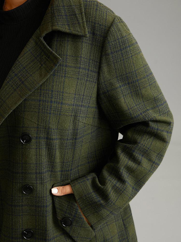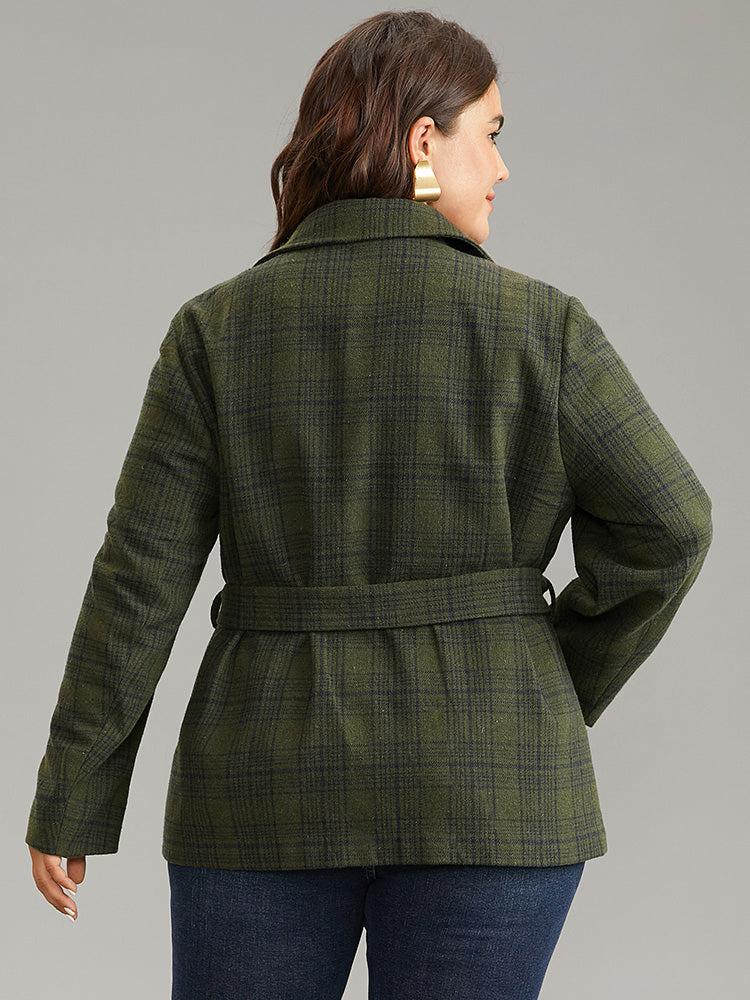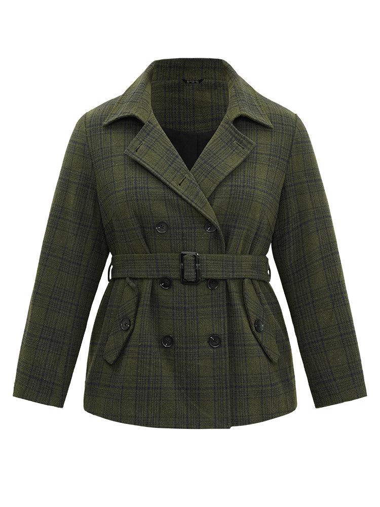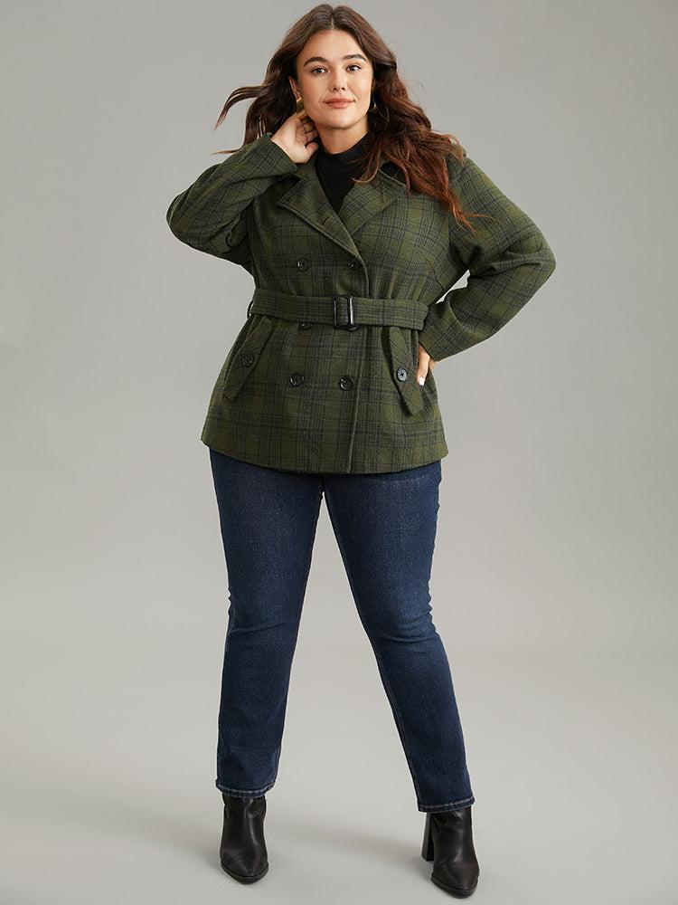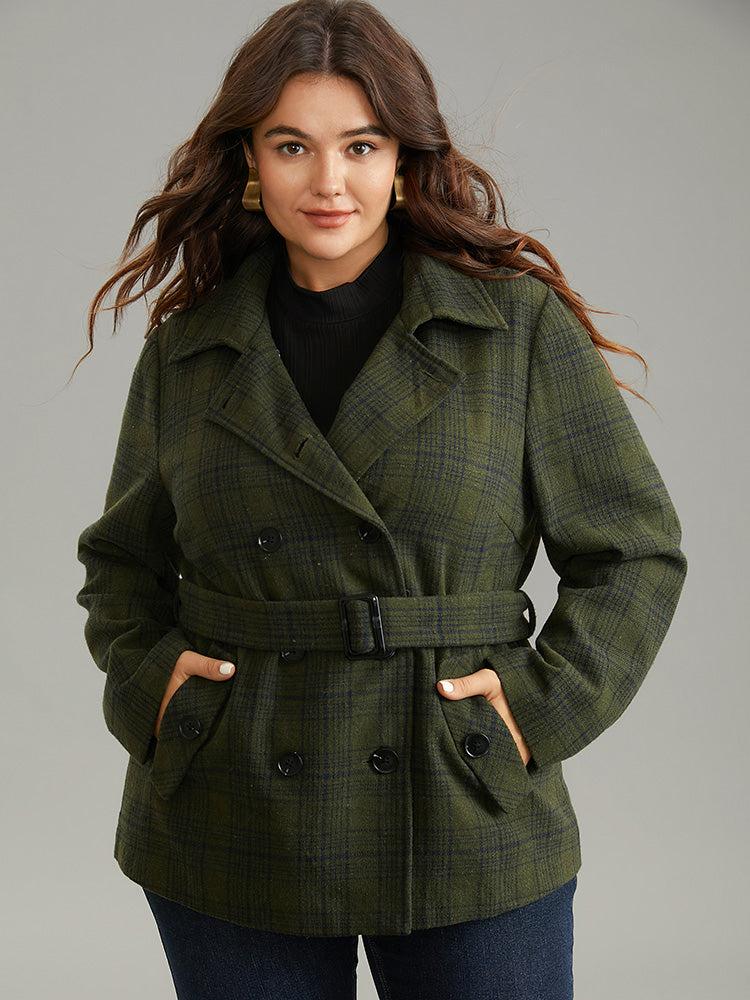 Shop Plaid Lapel Collar Double Breasted Belted Coat now and redefine your style with confidence at BloomChic. Tailored for mid and plus-size women. This trendy Outerwear Women, sizes 10-30. Season:Winter;Color:ArmyGreen;Style:Casual;Pattern Type:Plaid;Details:Pocket, Button, Contrast, Belted, Lined;Pocket:It is perfectly sized to carry a phone.;Belt:Belt;Closure Type:Button;Lining:No-lining