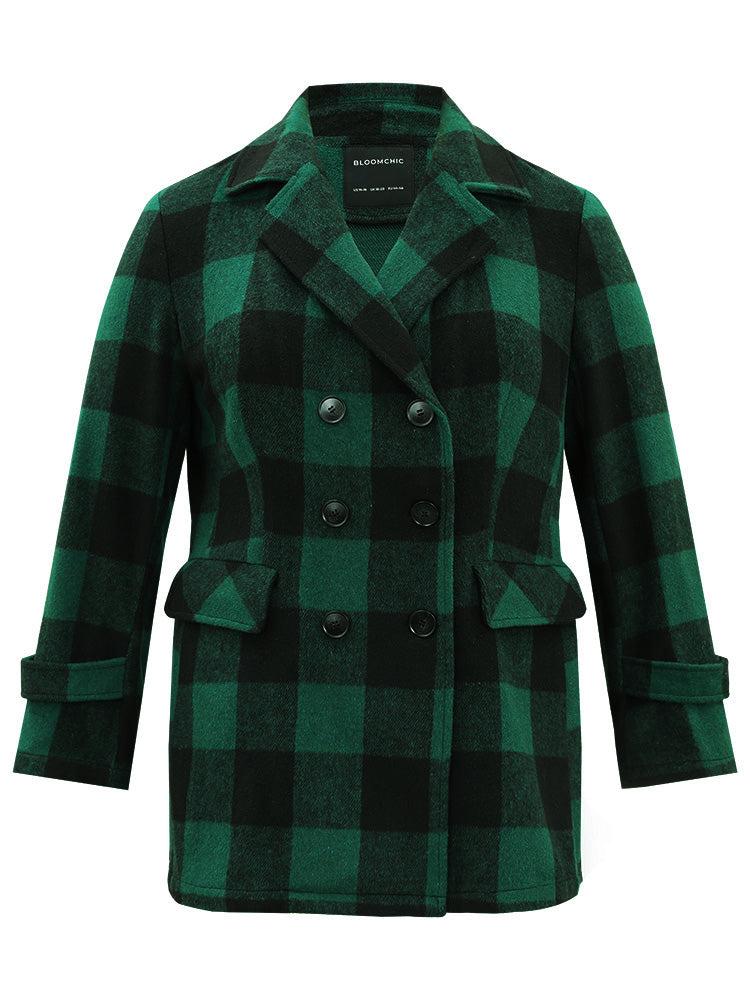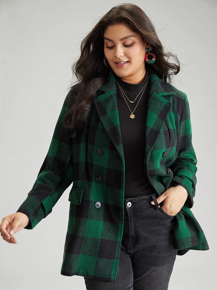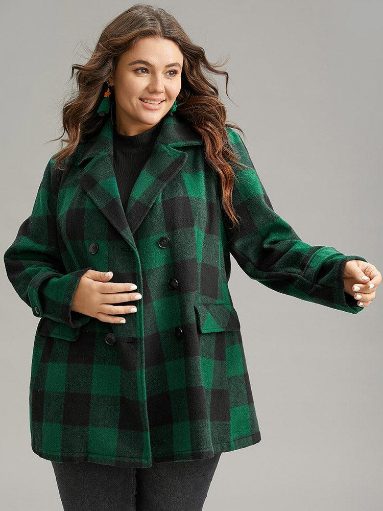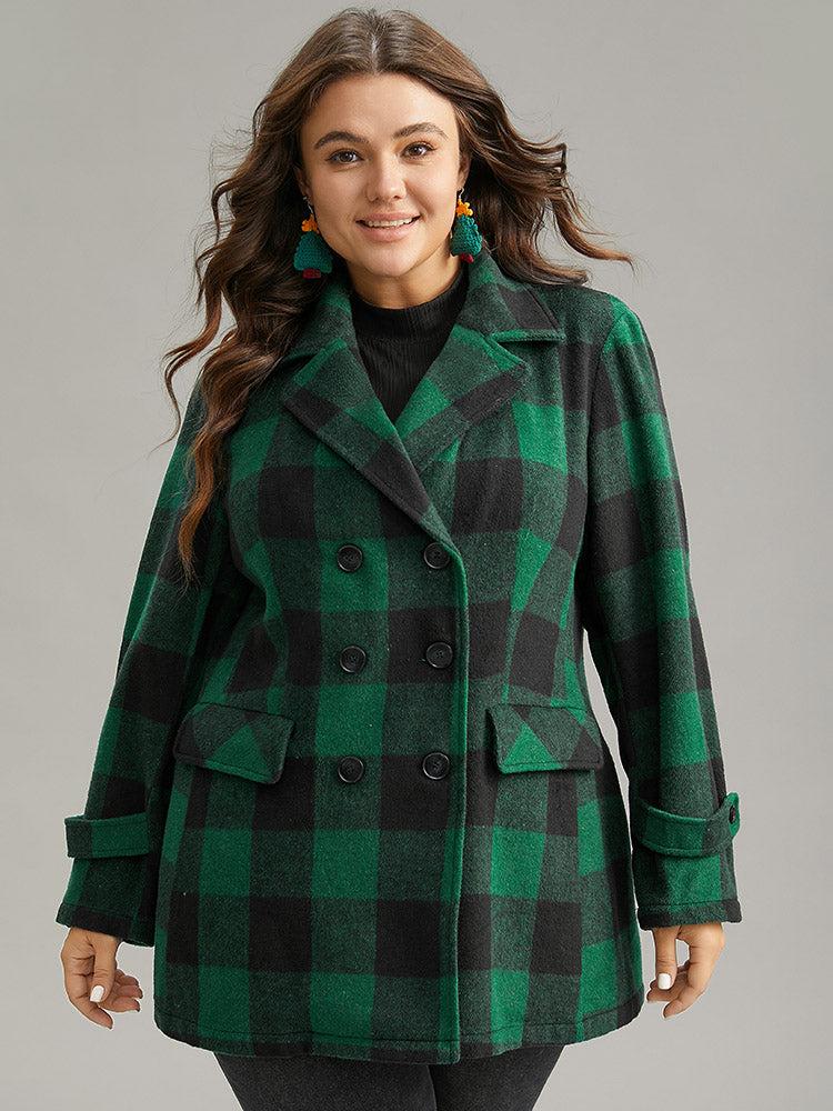 Shop Plaid Lapel Collar Flap Detail Double Breasted Coat now and redefine your style with confidence at BloomChic. Tailored for mid and plus-size women. This trendy Outerwear Women, sizes 10-30. Season:Winter;Color:DarkGreen;Style:Casual;Pattern Type:Plaid;Details:Pocket, Button, Contrast;Pocket:It is perfectly sized to carry a phone.;Belt:No-belt;Closure Type:Button;Lining:No-lining