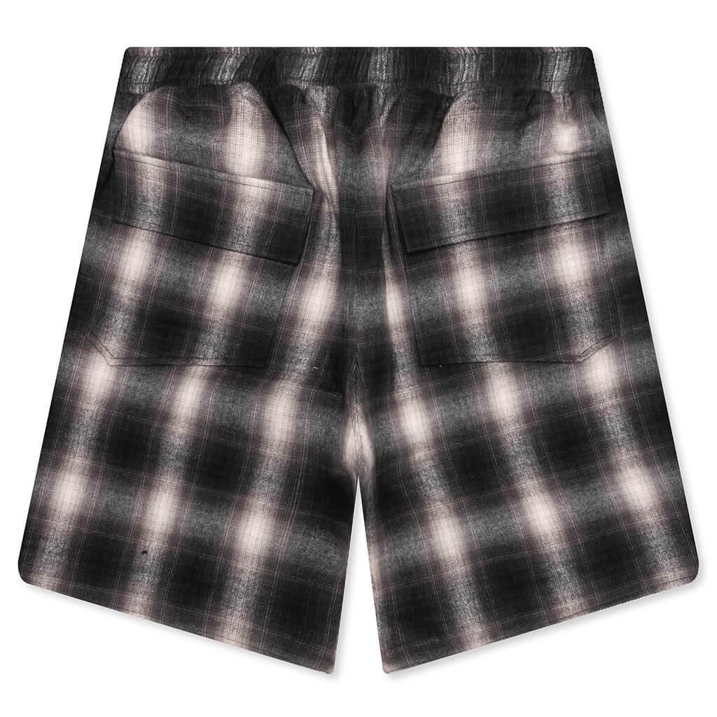 The Plaid Logo Short in Black and Grey brings a classic plaid pattern to a relaxed silhouette. Made from cotton, these shorts feature side seam pockets, a single back pocket, and an elasticized waistband with adjustable drawstrings for a comfortable fit. A printed graphic on the front adds a subtle branding touch to complete the look. 100% Cotton Side seam pockets Single back pocket Elasticized waistband Drawstrings at waist Printed graphic on front All over plaid Style No: RHPF24SH01604-0486 PF24SH016040486