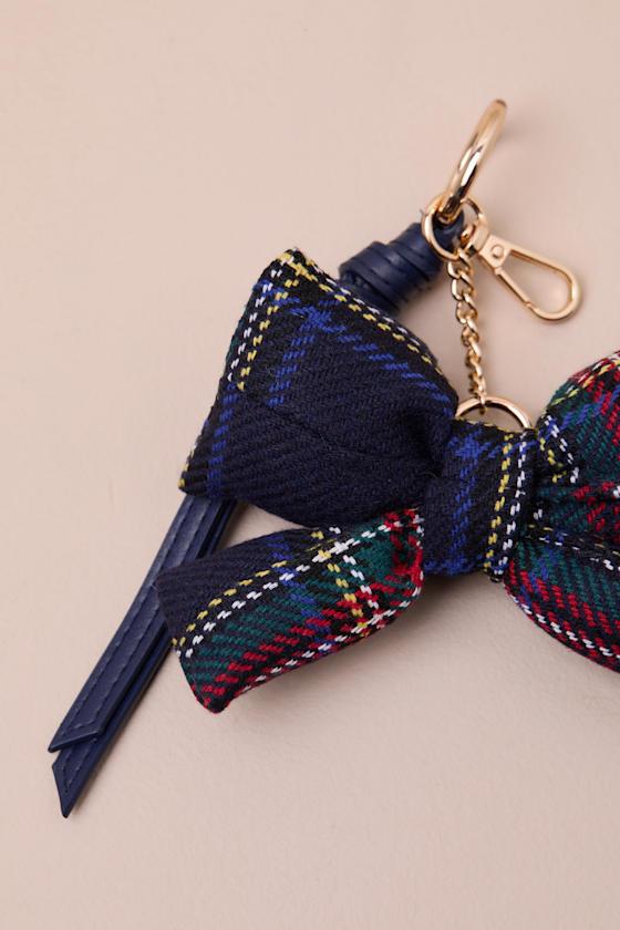 If you love to complete any look by adding your favorite tote or handbag, then you'll adore this bag charm by Shiraleah that allows you to accessorize your accessories! The star of the show of this lil' key ring is the puffy tartan plaid bow, paired with a coordinating faux leather tassel. A gold-toned key ring makes it easy to clip on and off whenever you decide to change up your purse game.