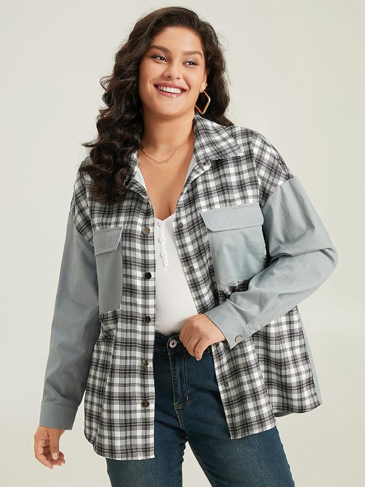 Shop Plaid Pocket Patchwork Contrast Coat now and redefine your style with confidence at BloomChic. Tailored for mid and plus-size women. This trendy Outerwear Women, sizes 10-30. Season:Fall;Color:LightBlue;Pattern Type:Plaid;Details:Pocket, Button, Patchwork, Contrast;Pocket:It is perfectly sized to carry a phone.;Belt:No-belt;Closure Type:Button;Lining:No-lining