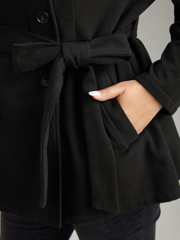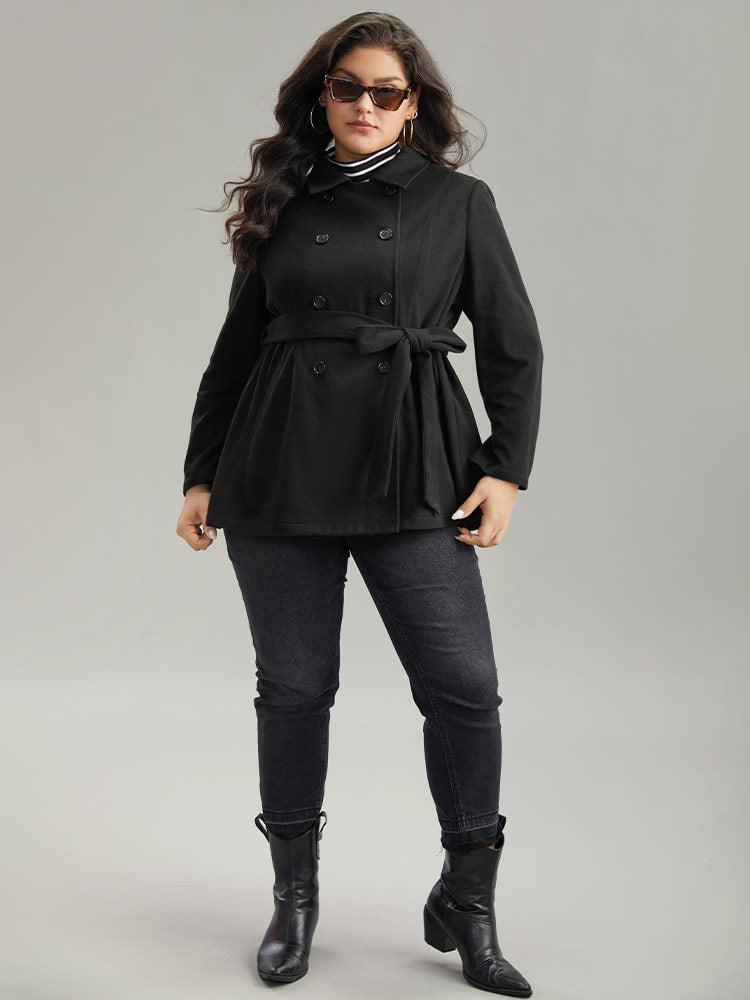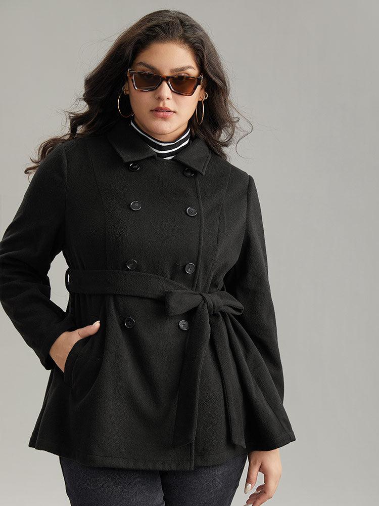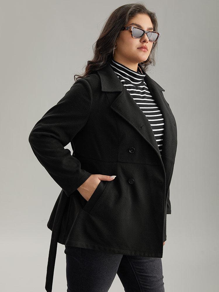 Shop Plain Belted Double Breasted Pocket Coat now and redefine your style with confidence at BloomChic. Tailored for mid and plus-size women. This trendy Outerwear Women, sizes 10-30. Season:Winter;Color:Black;Style:Casual;Pattern Type:Plain;Details:Pocket, Button, Belted, Plain;Pocket:It is perfectly sized to carry a phone.;Belt:Belt;Closure Type:Button;Lining:No-lining