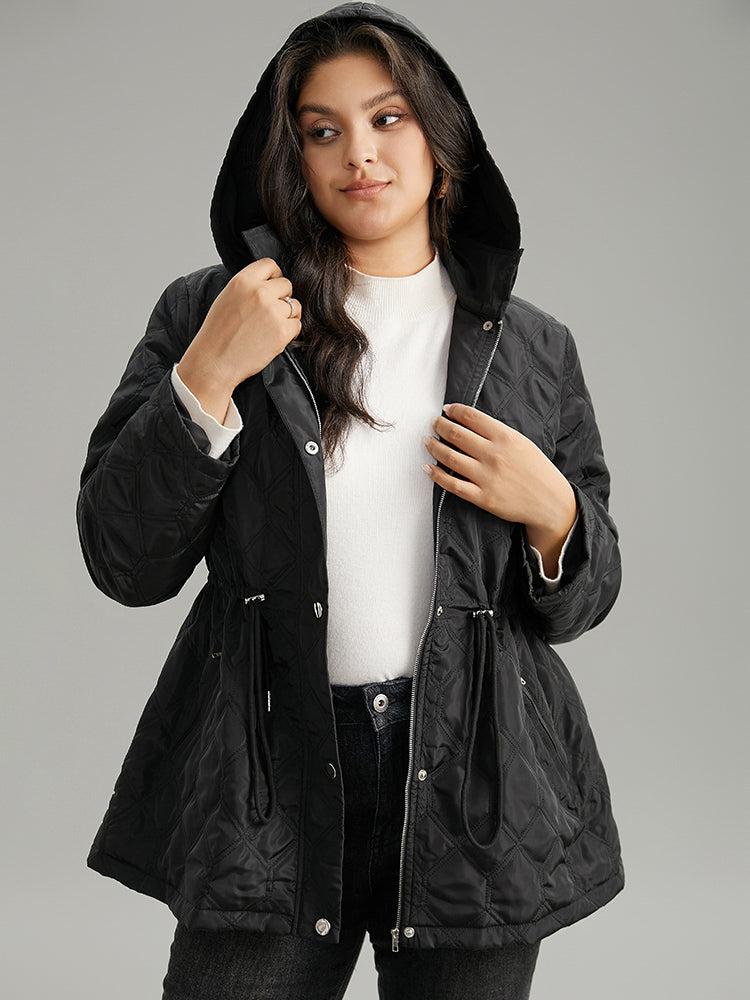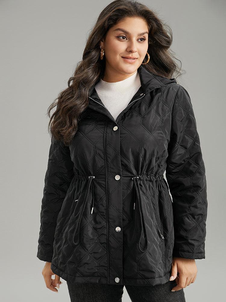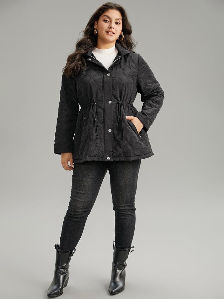 Shop Plain Button Up Drawstring Hooded Coat now and redefine your style with confidence at BloomChic. Tailored for mid and plus-size women. This trendy Outerwear Women, sizes 10-30. Season:Winter;Color:Black;Style:Casual;Pattern Type:Plain;Details:Pocket, Button, Drawstring, Plain;Pocket:It is perfectly sized to carry a phone.;Belt:No-belt;Closure Type:Button;Lining:No-lining