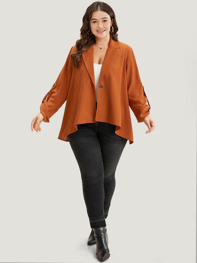 Shop Plain Button Up Tab Sleeve High Low Hem Blazer now and redefine your style with confidence at BloomChic. Tailored for mid and plus-size women. This trendy Outerwear Women, sizes 10-30. Season:Fall;Color:Chocolate;Neckline:Lapel Collar;Sleeve Type:Regular Sleeve;Pattern Type:Plain;Details:Button, Plain, Drape;Pocket:No-pocket;Belt:No-belt;Closure Type:Button;Lining:No-lining