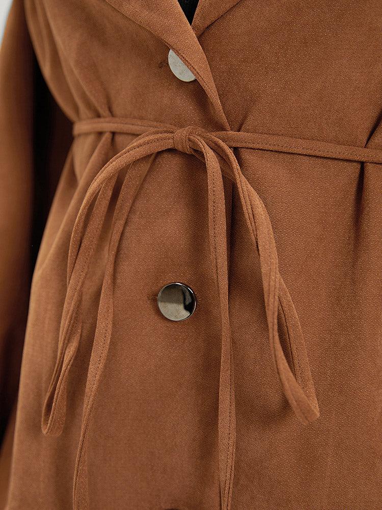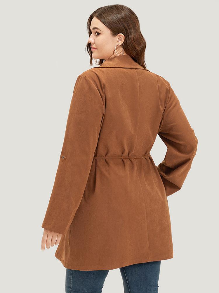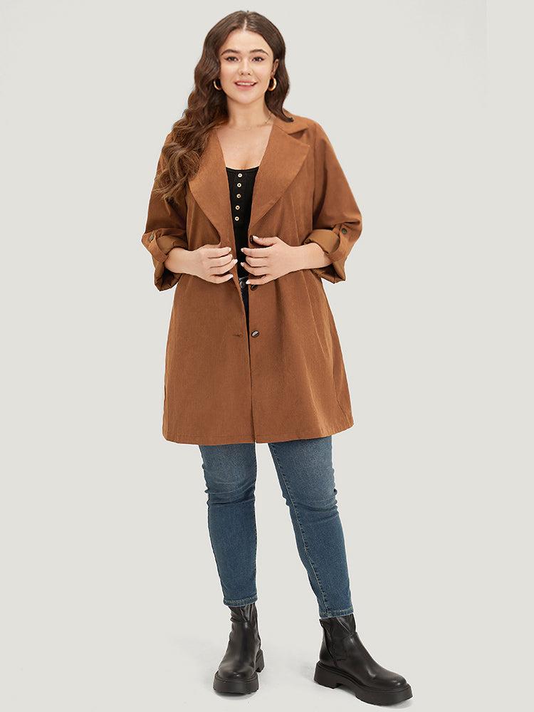 Shop Plain Corduroy Belted Bowknot Roll Tab Sleeve Coat now and redefine your style with confidence at BloomChic. Tailored for mid and plus-size women. This trendy Outerwear Women, sizes 10-30. Season:Fall;Color:Bronze;Style:Casual;Pattern Type:Plain;Details:Button, Belted, Plain, Knotted, Pocket;Pocket:It is perfectly sized to carry a phone.;Belt:Belt;Closure Type:Button;Lining:No-lining