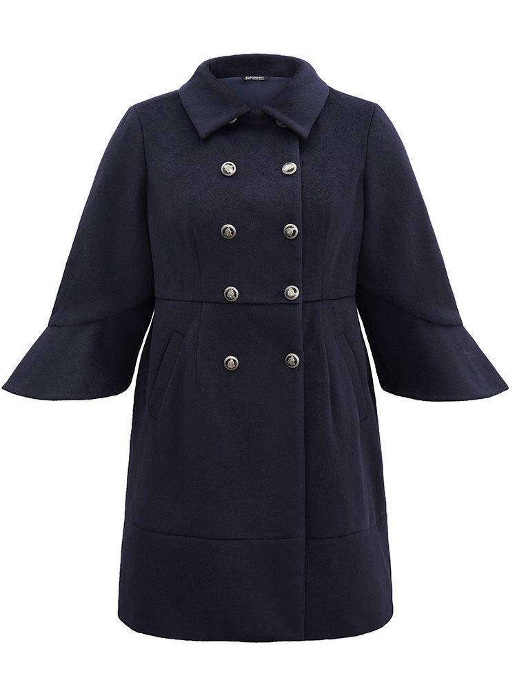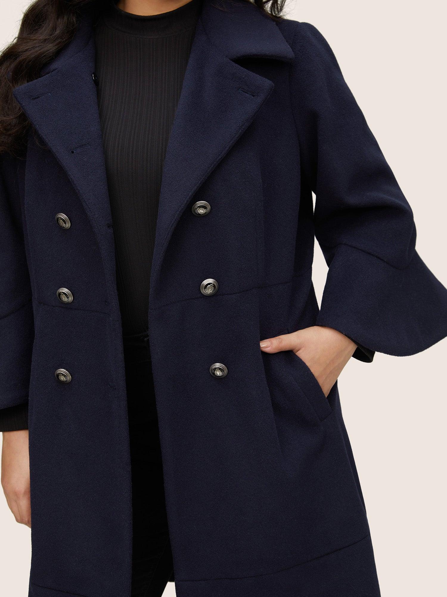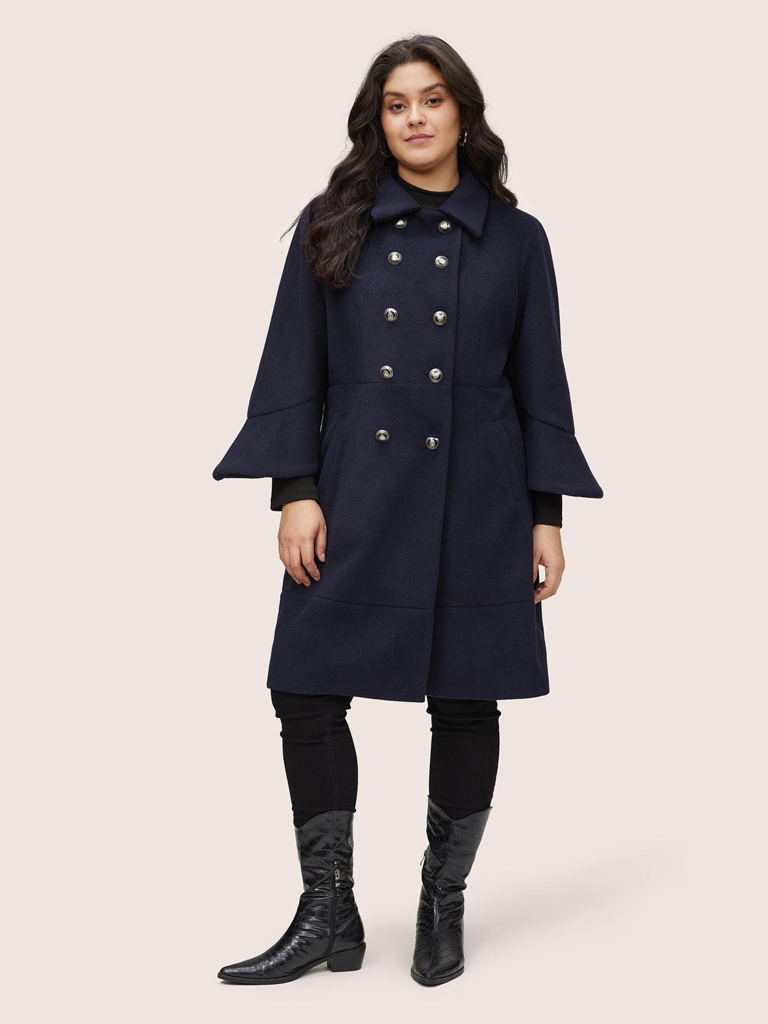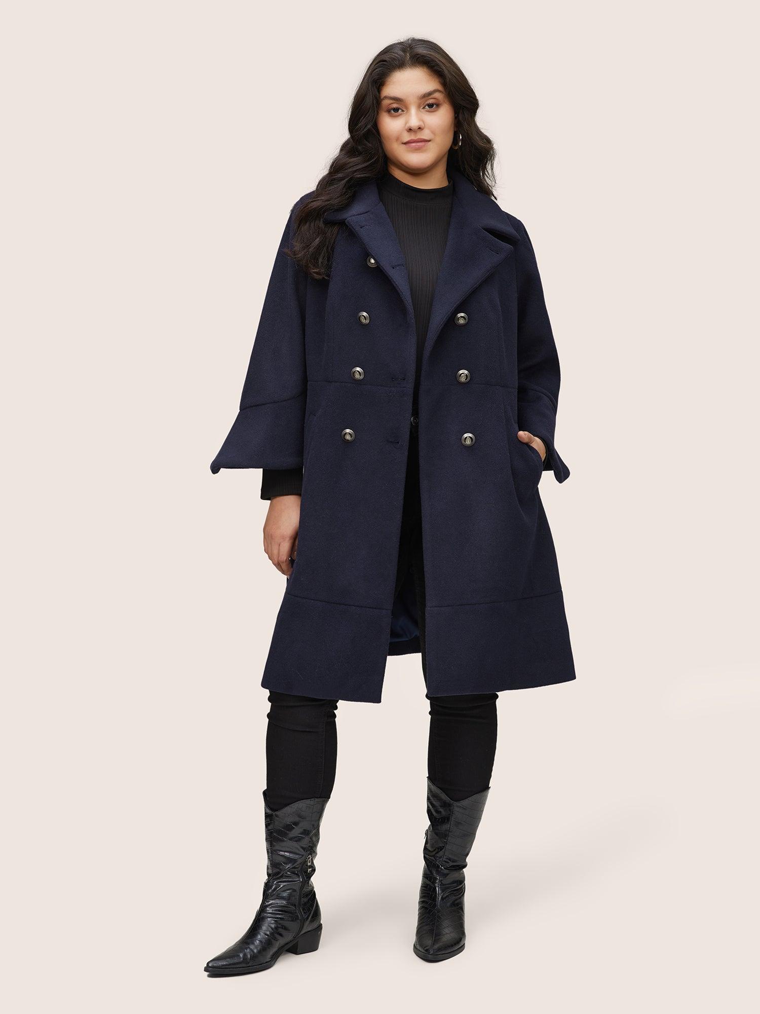 Shop Plain Double Breasted Asymmetrical Sleeve Coat now and redefine your style with confidence at BloomChic. Tailored for mid and plus-size women. This trendy Outerwear Women, sizes 10-30. Season:Winter;Color:Midnight;Style:Casual;Pattern Type:Plain;Details:Pocket, Button, Asymmetrical, Plain, Lined;Pocket:It is perfectly sized to carry a phone.;Belt:No-belt;Closure Type:Button;Lining:Lining