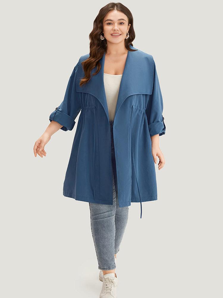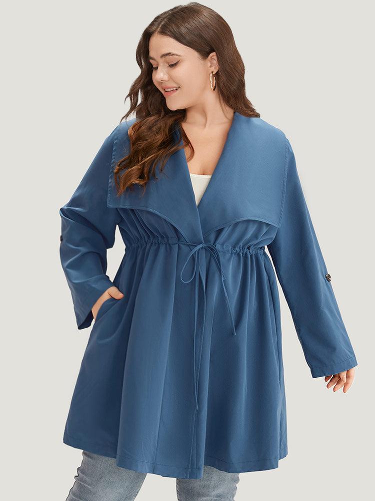 Shop Plain Drawstring Pocket Lapel Collar Tab Sleeve Coat now and redefine your style with confidence at BloomChic. Tailored for mid and plus-size women. This trendy Outerwear Women, sizes 10-30. Season:Fall;Color:DarkBlue;Pattern Type:Plain;Details:Knotted, Plain, Drawstring, Pocket, Asymmetrical;Pocket:It is perfectly sized to carry a phone.;Belt:No-belt;Lining:No-lining