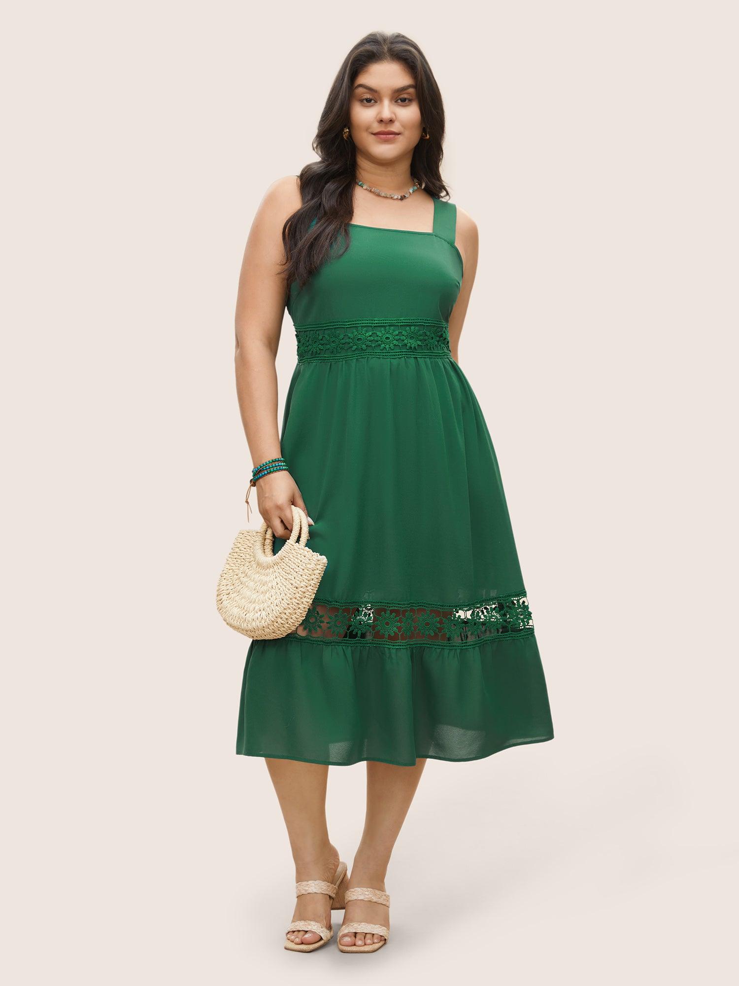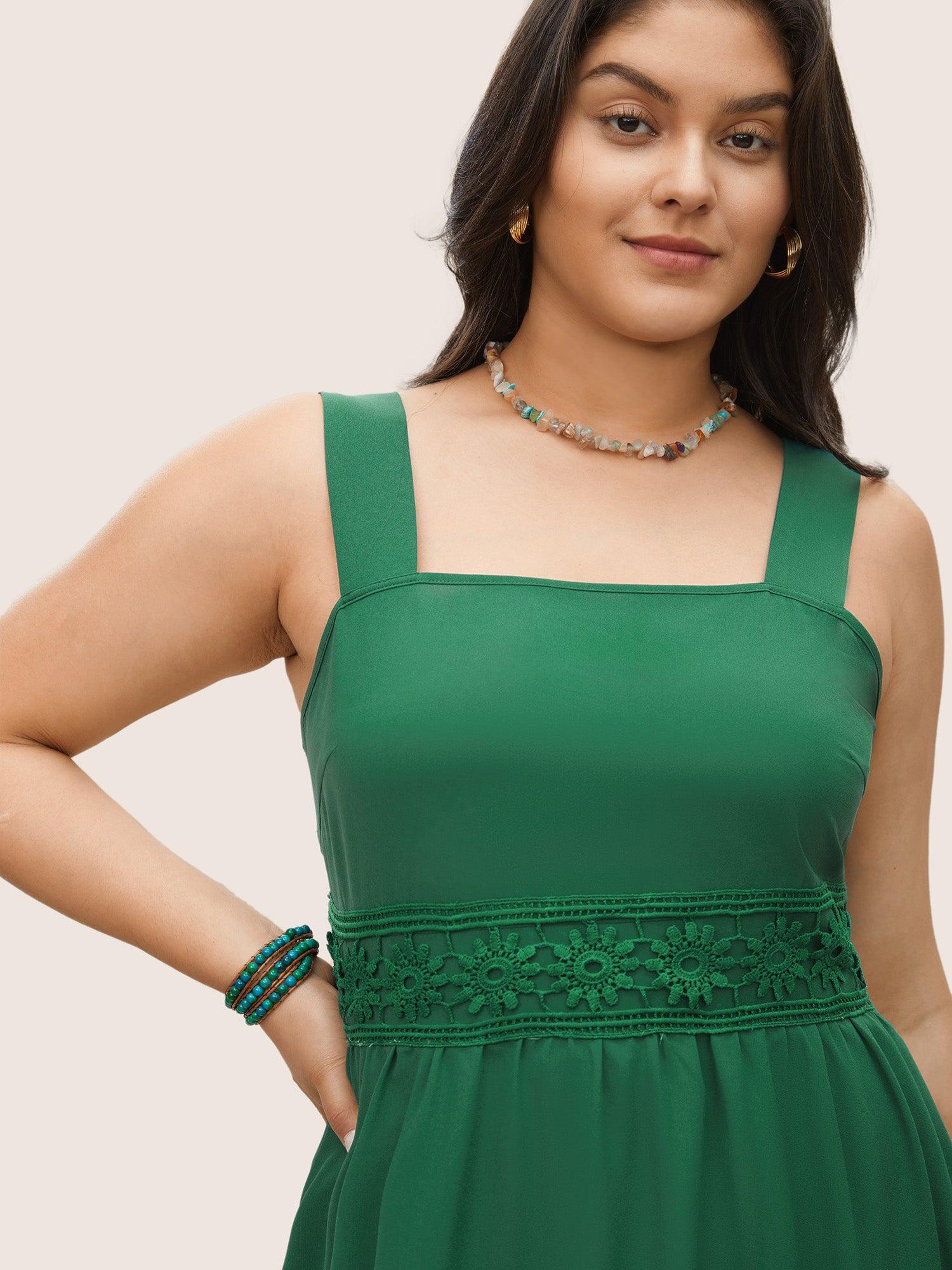 Shop Plain Elastic Waist Cut Out Lace Patchwork Dress now and redefine your style with confidence at BloomChic. Tailored for mid and plus-size women. This trendy Dress, sizes 10-30. You can never go wrong with BloomChic Dresses. Color:Emerald;Neckline:Non;Sleeve Type:Sleeveless;Pattern Type:Graphic;Pocket:Side seam pocket;Belt:No-belt