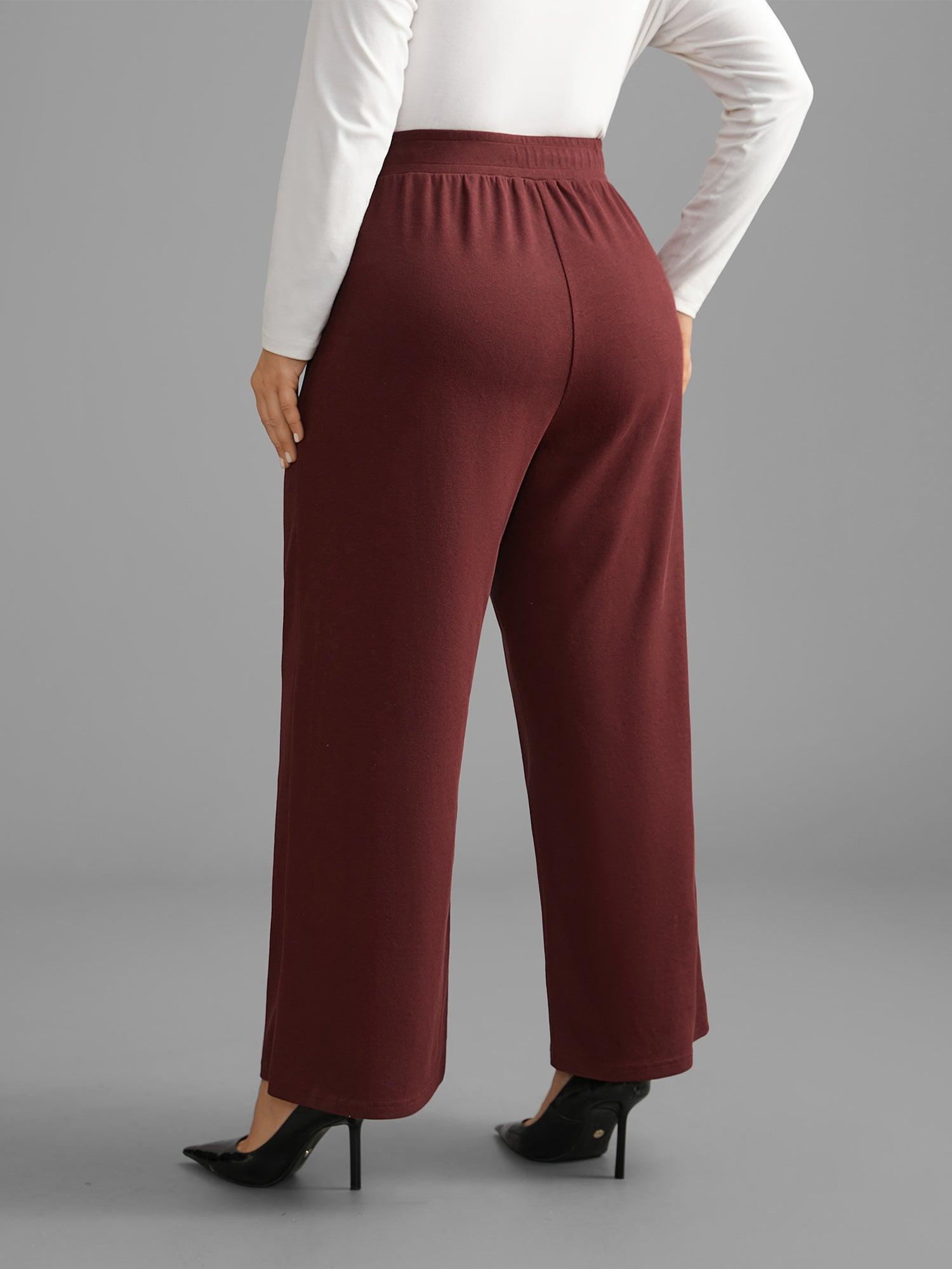 Shop Plain Elastic Waist Straight Leg Pants now and redefine your style with confidence at BloomChic. Tailored for mid and plus-size women. This trendy Bottoms Women, sizes 10-30. Season:Winter;Color:Deepred;Style:Elegant;Waist Design:Mid Rise;Prints:Non;Pocket:Slanted pocket;Belt:No-belt;Closure Type:Non
