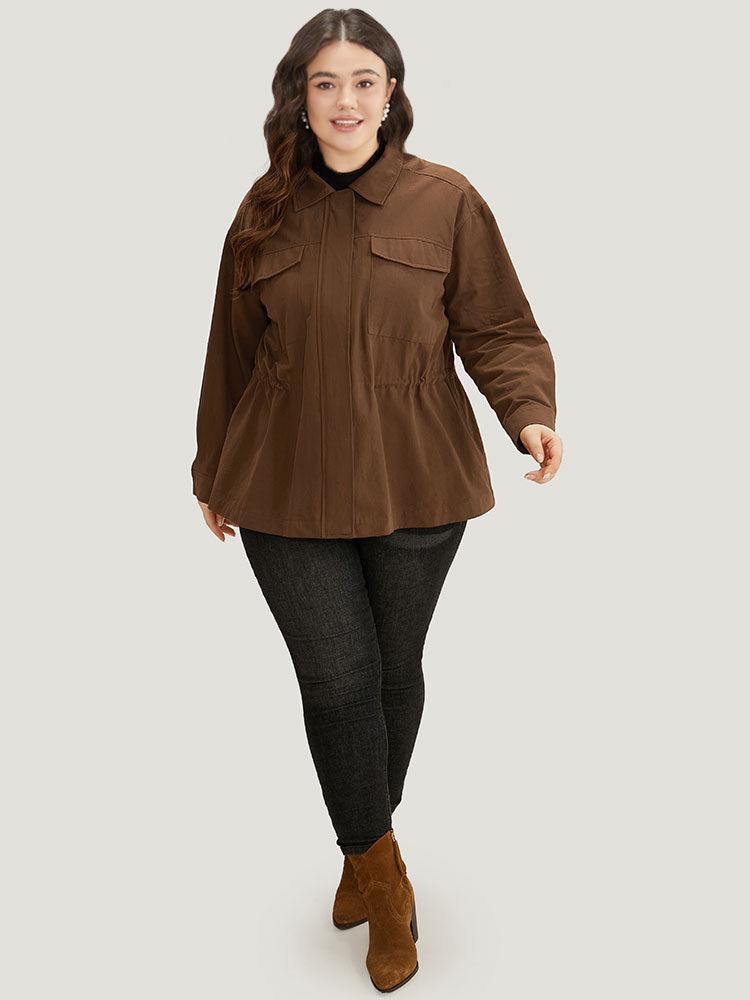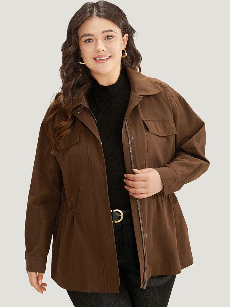 Shop Plain Flap Pocket Gathered Coat now and redefine your style with confidence at BloomChic. Tailored for mid and plus-size women. This trendy Outerwear Women, sizes 10-30. Season:Winter;Color:Maroon;Style:Casual;Details:Pocket, Button, Zipper, Gathered, Plain;Pocket:It is perfectly sized to carry a phone.;Belt:No-belt;Closure Type:Zipper;Lining:No-lining