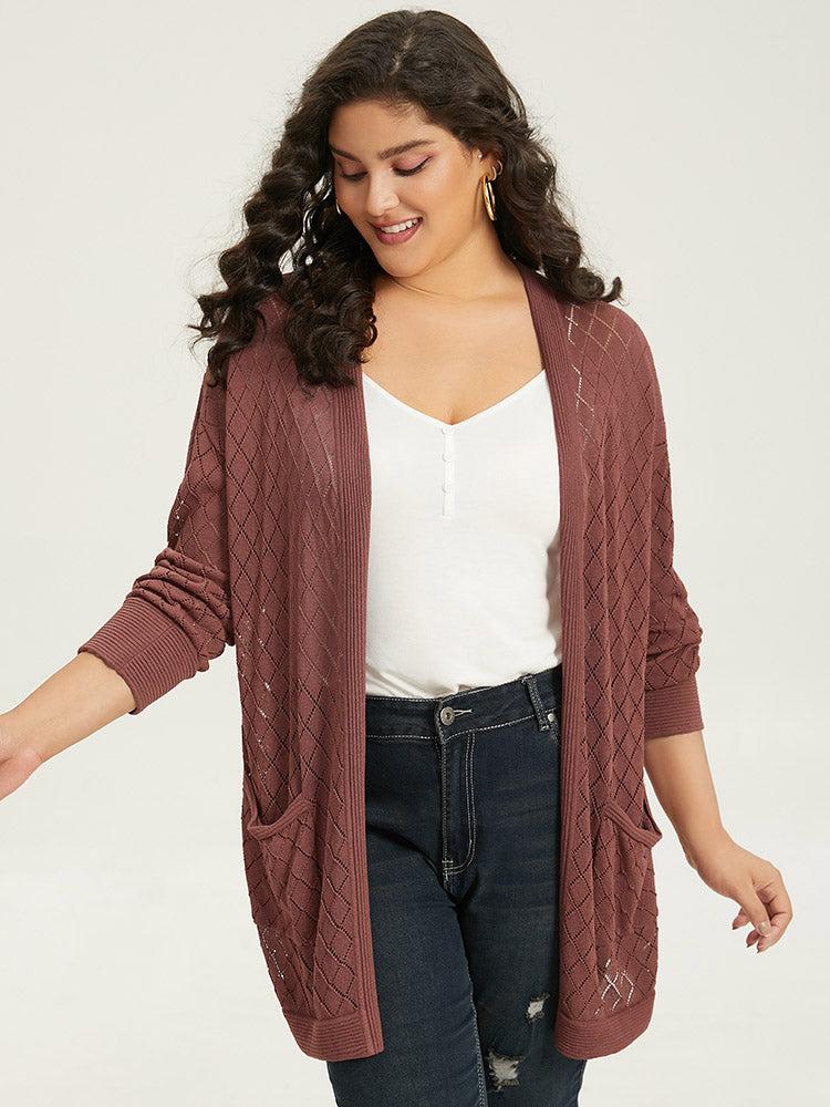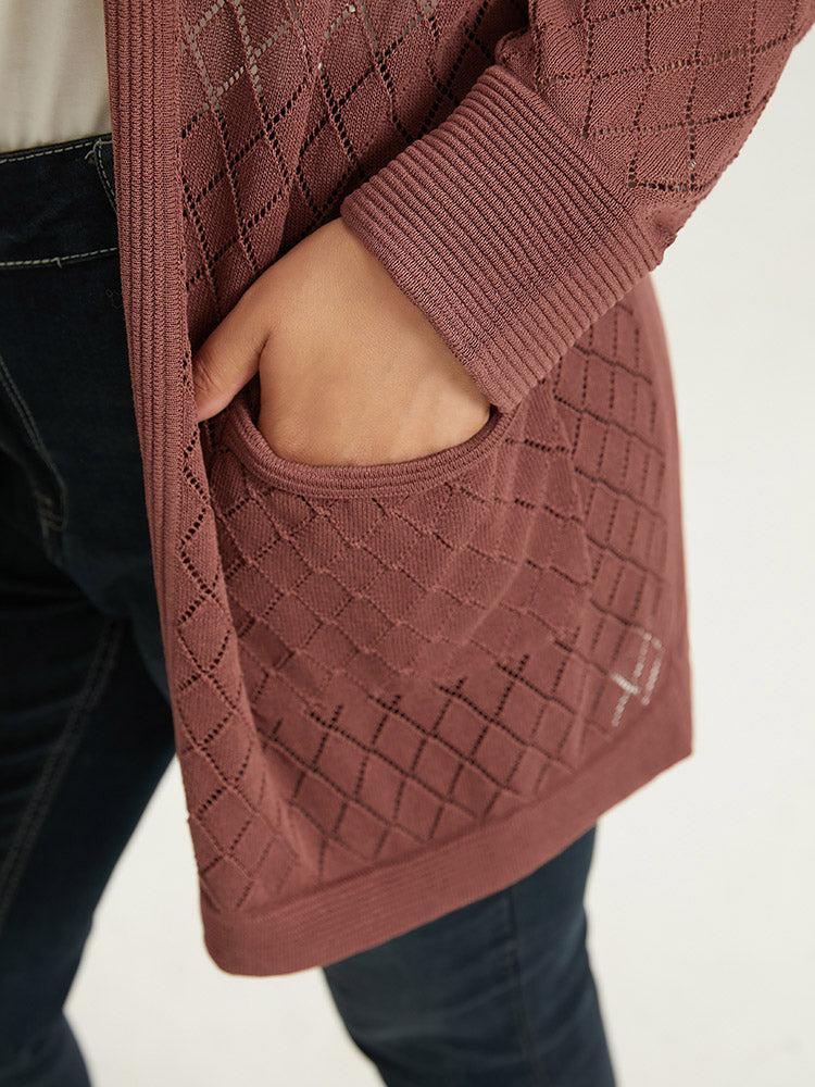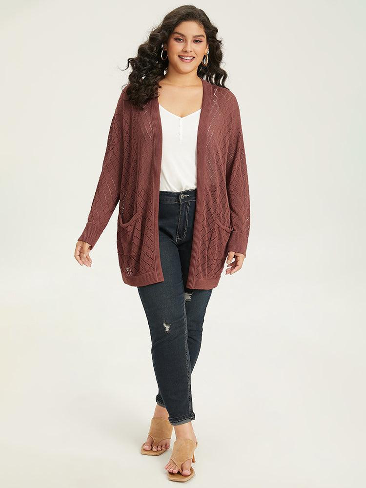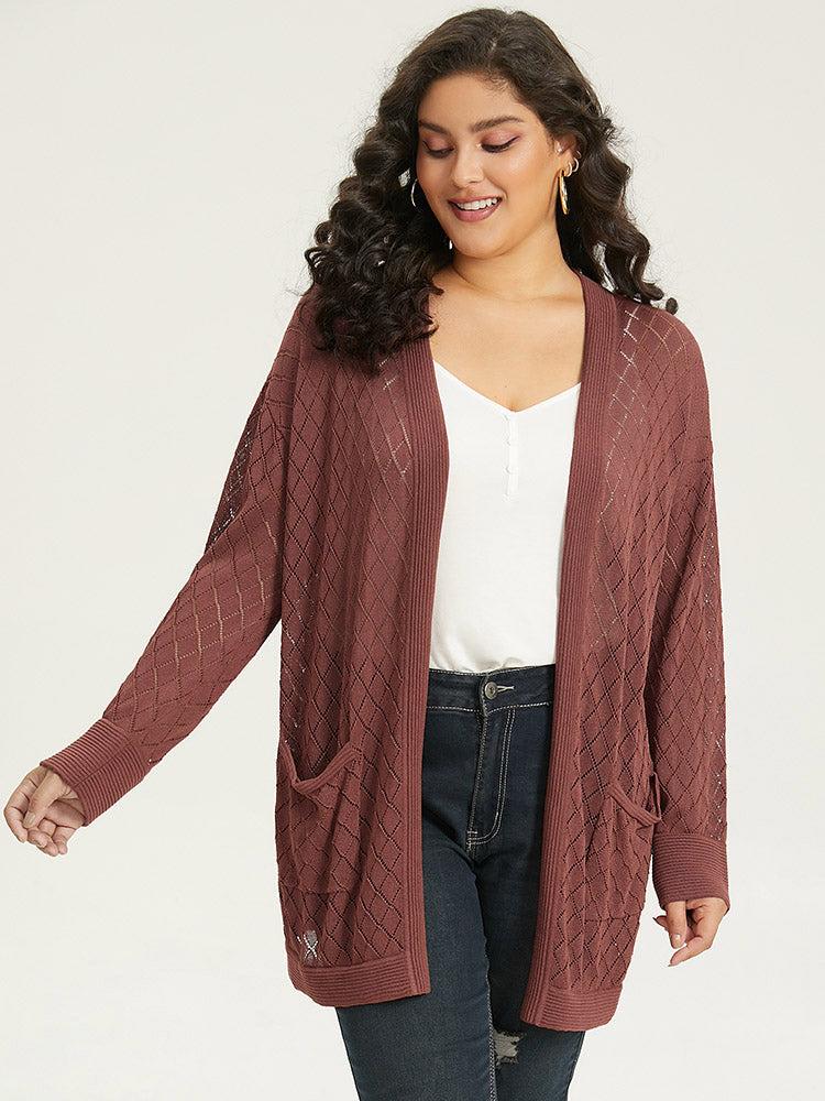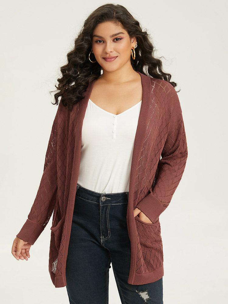 Shop Plain Geometric Hollow Out Pocket Cardigan now and redefine your style with confidence at BloomChic. Tailored for mid and plus-size women. This trendy Sweaters Cardigans Women, sizes 10-30. Season:Fall;Color:Rust;Neckline:Open Front;Sleeve Type:Regular Sleeve;Pattern Type:Geometric, Plain;Details:Pocket, Cut-Out, Plain, Texture;Pocket:It is perfectly sized to carry a phone.;Snap Fastener:No-snap fastener;Belt:No-belt