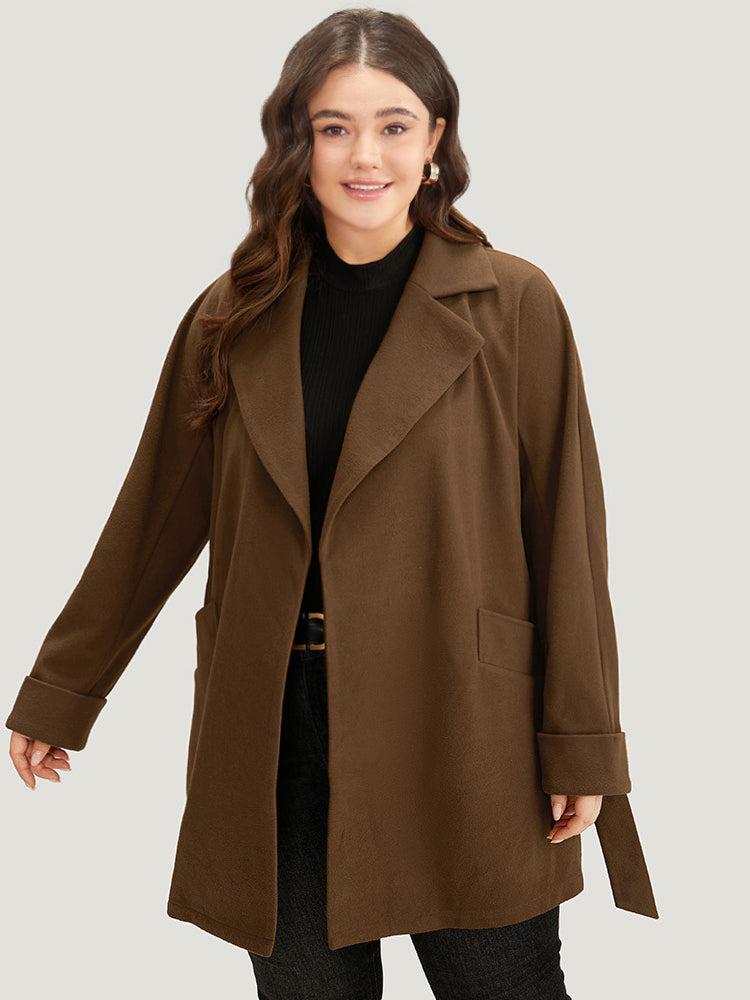 Shop Plain Lapel Collar Pocket Belted Coat now and redefine your style with confidence at BloomChic. Tailored for mid and plus-size women. This trendy Outerwear Women, sizes 10-30. Season:Fall;Color:DarkBrown;Style:Casual;Pattern Type:Plain;Details:Pocket, Belted, Plain, Knotted;Pocket:It is perfectly sized to carry a phone.;Belt:Belt;Lining:No-lining