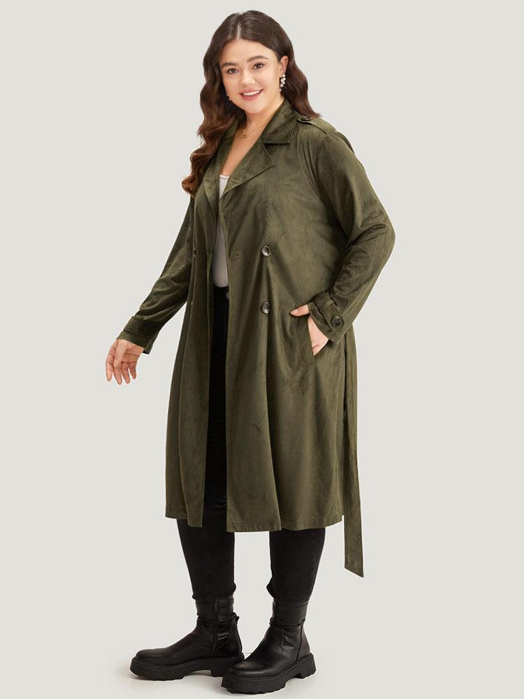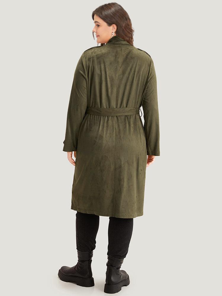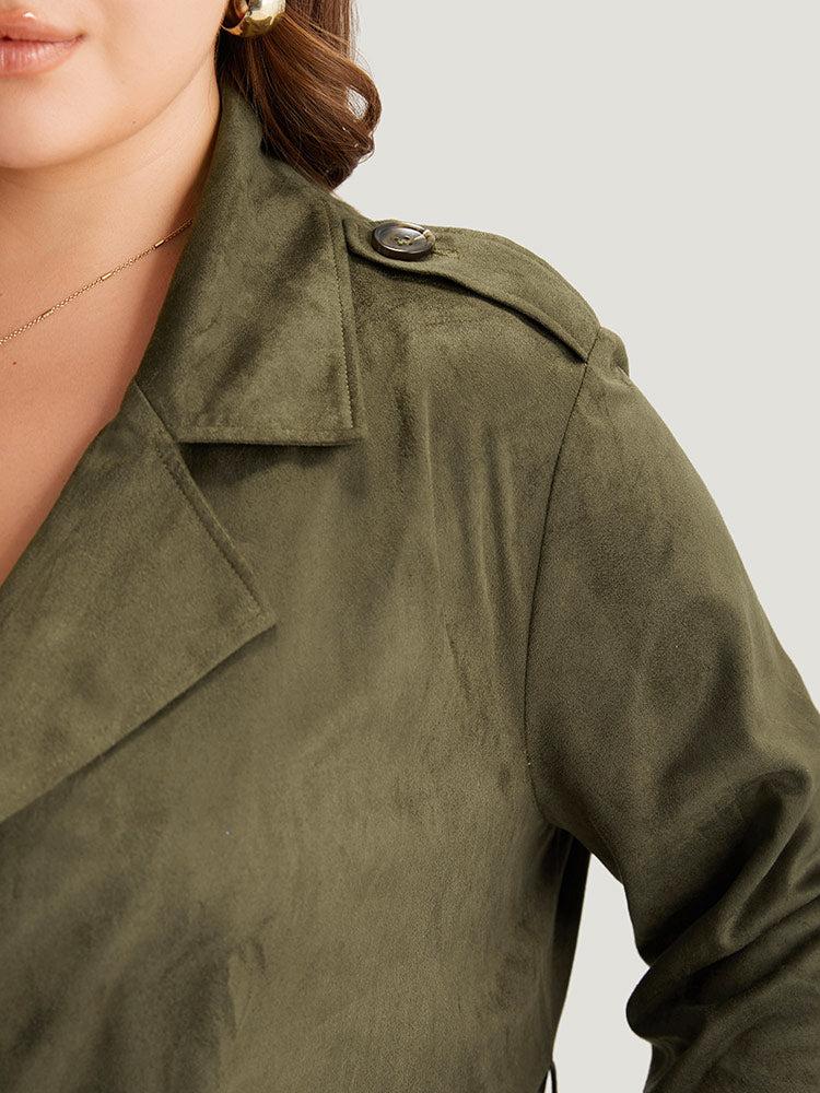 Shop Plain Lapel Collar Pocket Belted Faux Suede Coat now and redefine your style with confidence at BloomChic. Tailored for mid and plus-size women. This trendy Outerwear Women, sizes 10-30. Season:Winter;Color:ArmyGreen;Style:Casual;Pattern Type:Plain;Details:Pocket, Button, Plain, Belted;Pocket:It is perfectly sized to carry a phone.;Belt:Belt;Closure Type:Button;Lining:No-lining