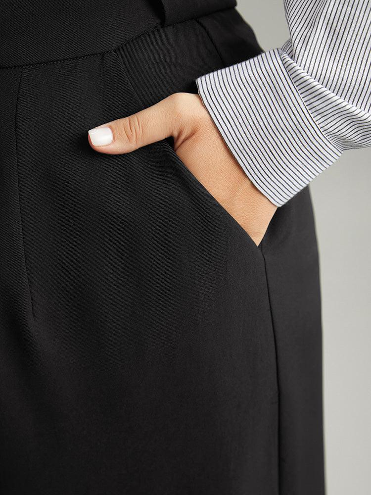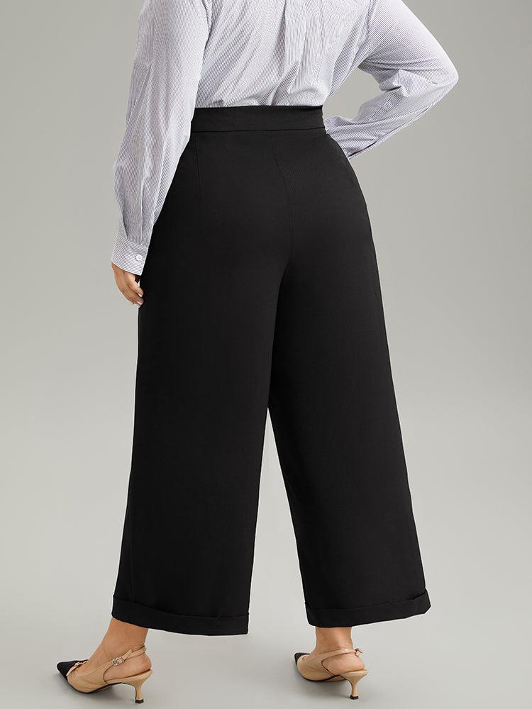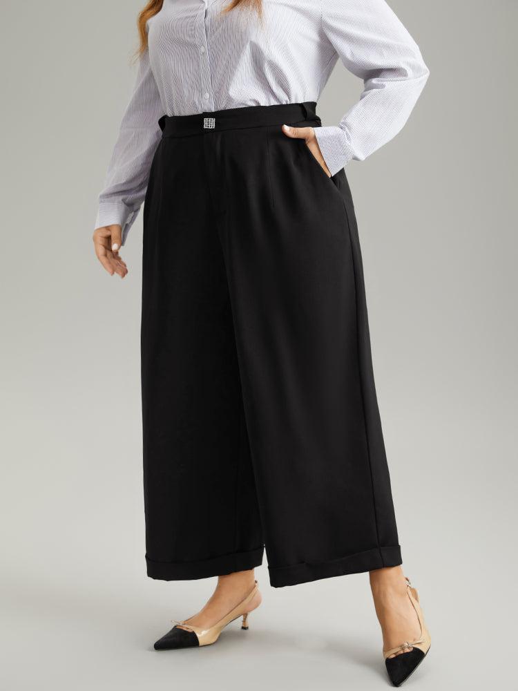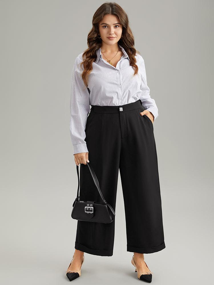 Shop Plain Metal Detail Pocket Wide Leg Pants now and redefine your style with confidence at BloomChic. Tailored for mid and plus-size women. This trendy Bottoms Women, sizes 10-30. Season:Winter;Color:Black;Style:Office;Waist Design:High Rise;Pattern Type:Plain;Details:Button, Pocket, Elastic Waist, Plain;Pocket:It is perfectly sized to carry a phone.;Belt:No-belt;Closure Type:Button