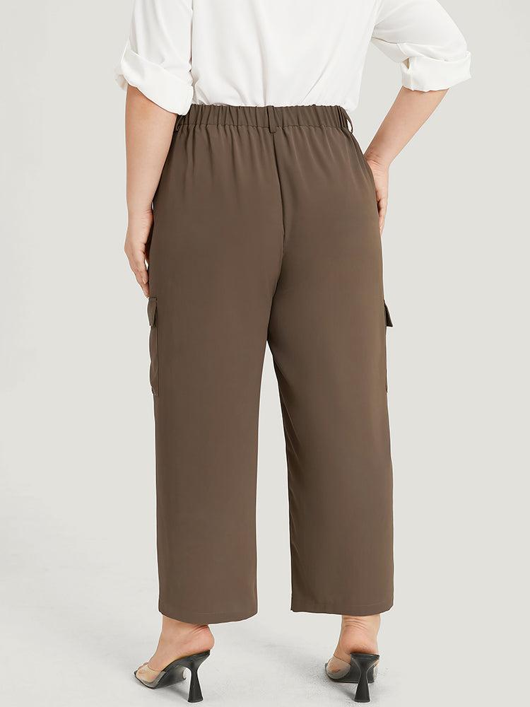 Shop Plain Pocket Elastic Waist High Rise Pants now and redefine your style with confidence at BloomChic. Tailored for mid and plus-size women. This trendy Bottoms Women, sizes 10-30. Season:Fall;Color:DarkBrown;Style:Office;Waist Design:High Rise;Pattern Type:Plain;Details:Pocket, Elastic Waist, Plain;Pocket:It is perfectly sized to carry a phone.;Belt:No-belt;Closure Type:Zipper