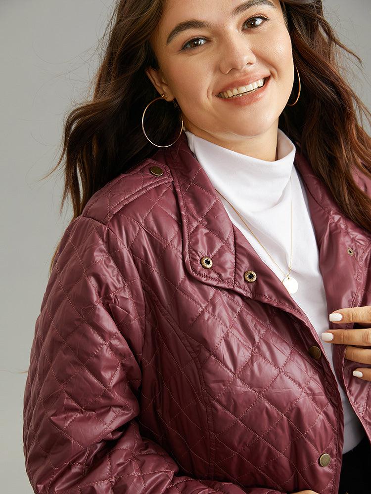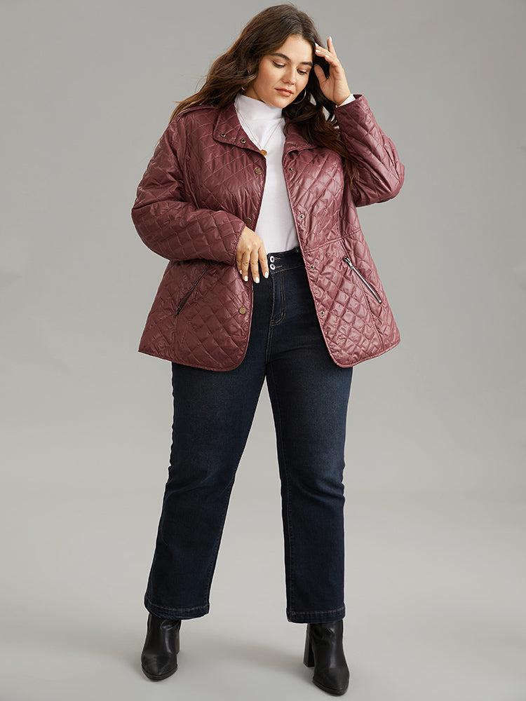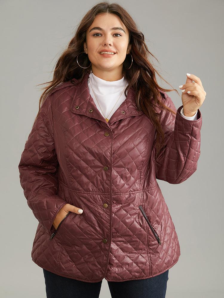 Shop Plain Quilted Button Through Slant Pocket Coat now and redefine your style with confidence at BloomChic. Tailored for mid and plus-size women. This trendy Outerwear Women, sizes 10-30. Season:Winter;Color:Burgundy;Style:Casual;Pattern Type:Plain;Details:Pocket, Button, Zipper, Plain;Pocket:It is perfectly sized to carry a phone.;Belt:No-belt;Closure Type:Button;Lining:No-lining