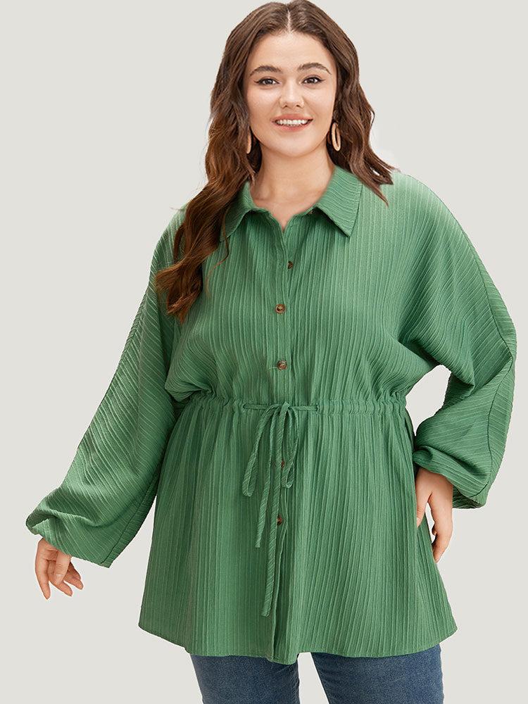 Shop Plain Shirt Collar Drawstring Button Through Lantern Sleeve Coat now and redefine your style with confidence at BloomChic. Tailored for mid and plus-size women. This trendy Outerwear Women, sizes 10-30. Season:Fall;Color:Emerald;Style:Casual;Pattern Type:Plain;Details:Drawstring, Knotted, Plain, Button, Texture, Elastic cuffs;Pocket:No-pocket;Belt:No-belt;Lining:No-lining