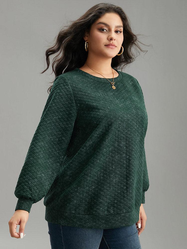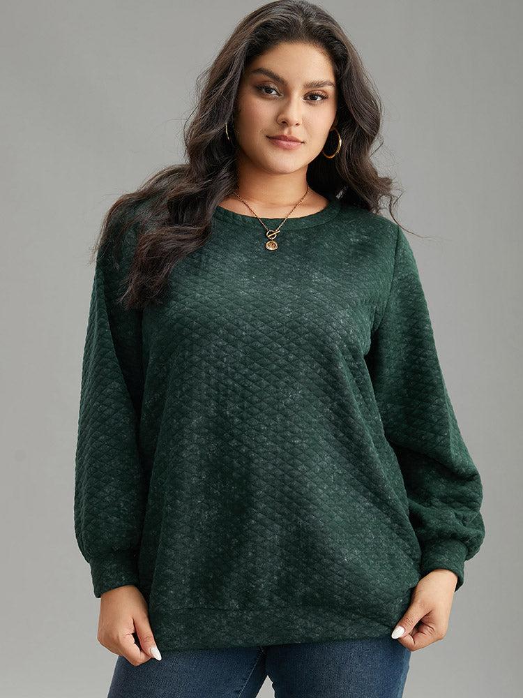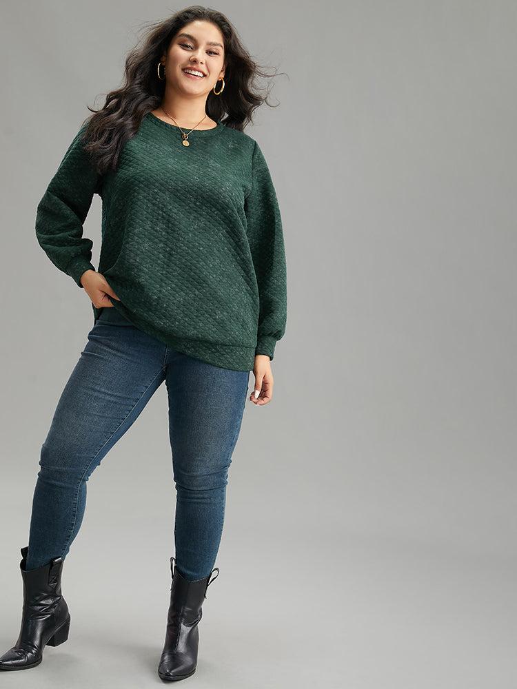 Shop Plain Textured Round Neck Sweatshirt now and redefine your style with confidence at BloomChic. Tailored for mid and plus-size women. This trendy Tops Women, sizes 10-30. Season:Winter;Color:Green;Style:Casual;Neckline:Round Neck;Sleeve Type:Regular Sleeve;Pattern Type:Plain;Details:Texture;Pocket:No-pocket;Belt:No-belt