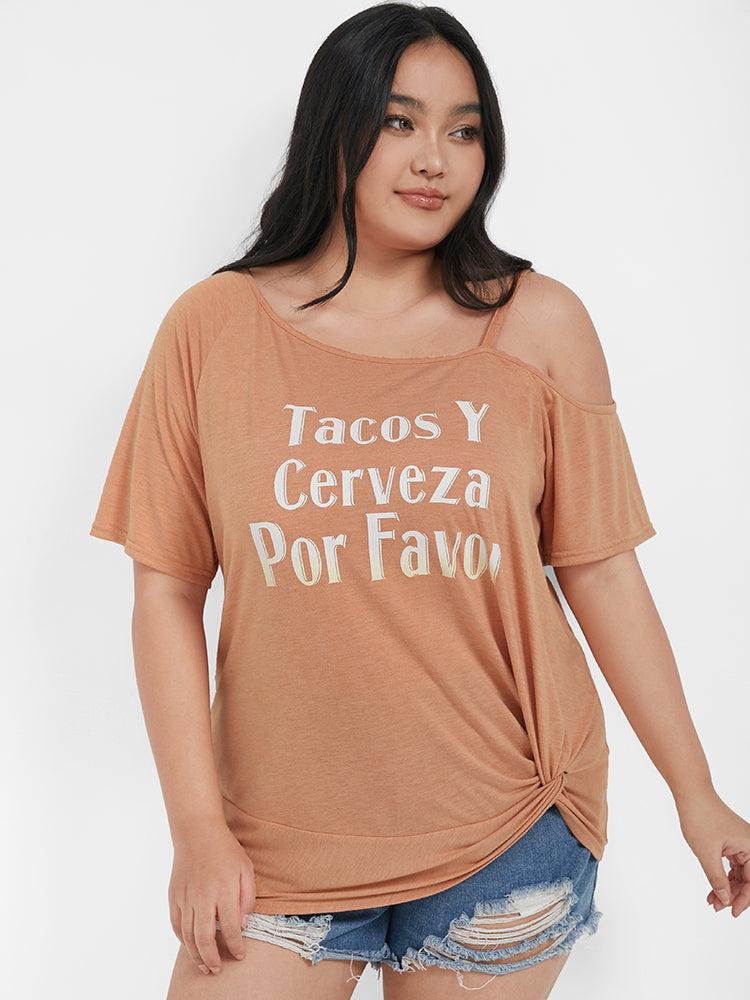 Shop Plain Twist Front Off Shoulder T-shirt now and redefine your style with confidence at BloomChic. Tailored for mid and plus-size women. This trendy Tops Women, sizes 10-30. Season:Summer;Color:Salmon;Pattern Type:Plain;Neckline:Round Neck;Sleeve Type:Regular Sleeve;Details:Twist-front, Printed, Gathered;Snap Fastener:No-snap fastener