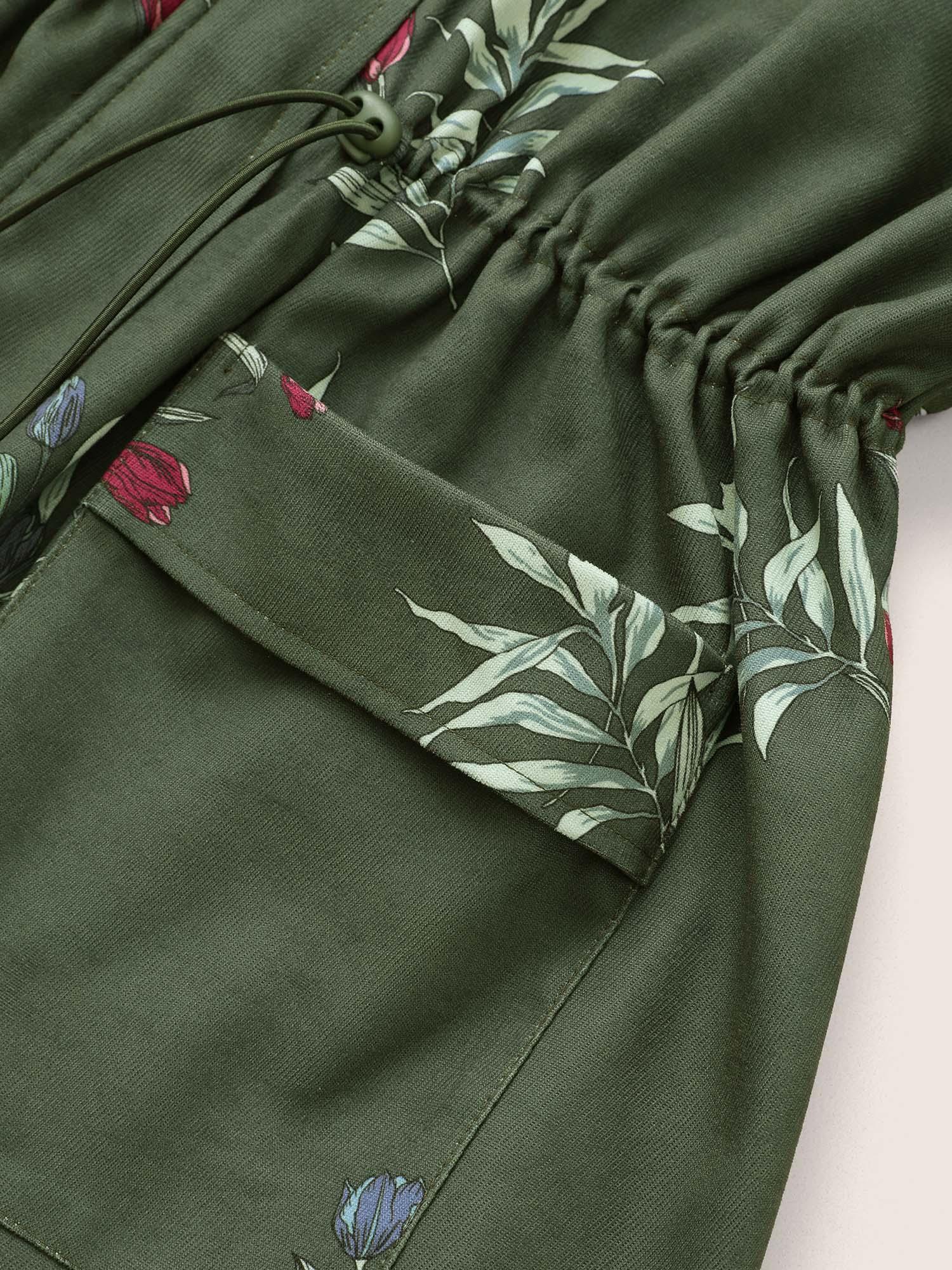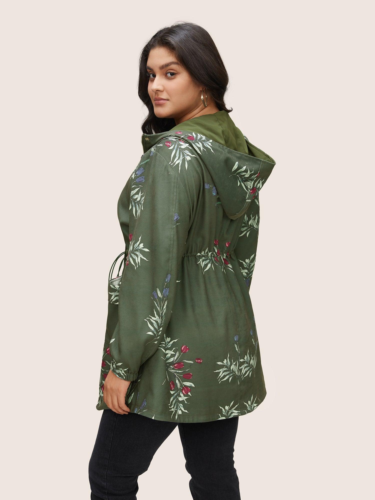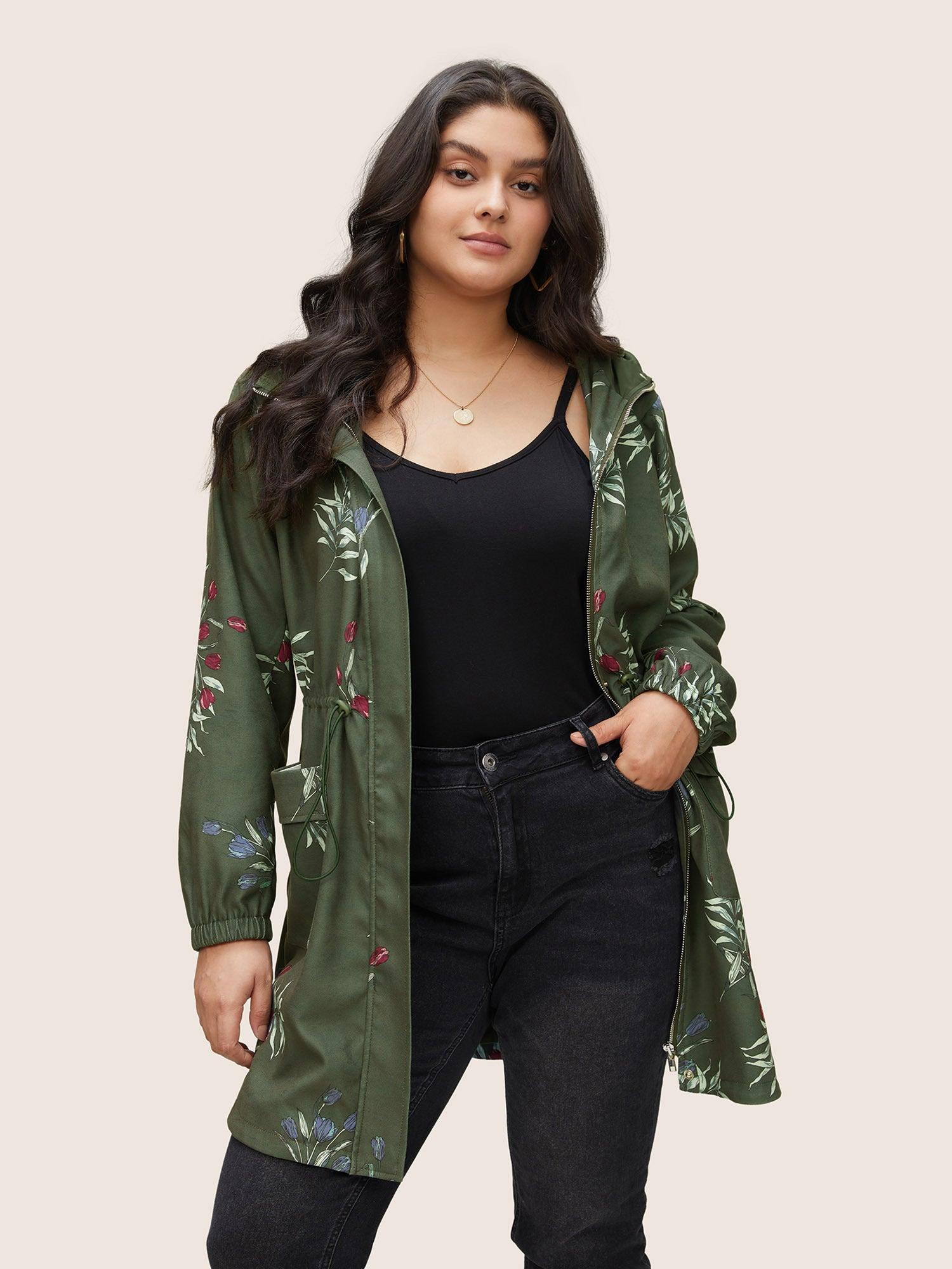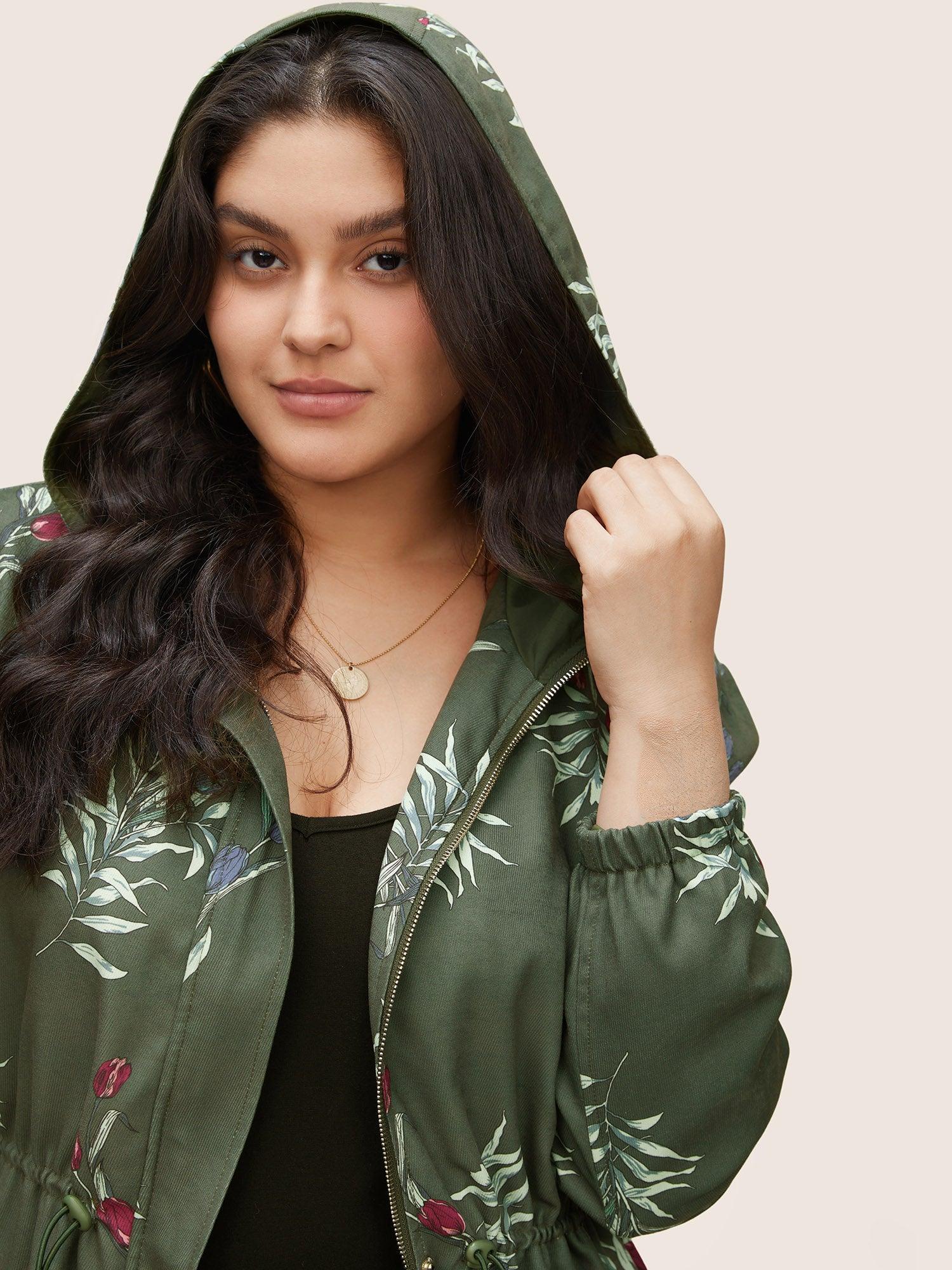 Shop Plants Drawstring Pocket Zipper Hooded Coat now and redefine your style with confidence at BloomChic. Tailored for mid and plus-size women. This trendy Outerwear Women, sizes 10-30. Season:Winter;Color:ArmyGreen;Pattern Type:Plants;Details:Pocket, Drawstring, Zipper, Printed, Contrast, Elastic cuffs;Pocket:It is perfectly sized to carry a phone.;Belt:No-belt;Closure Type:Zipper;Lining:No-lining