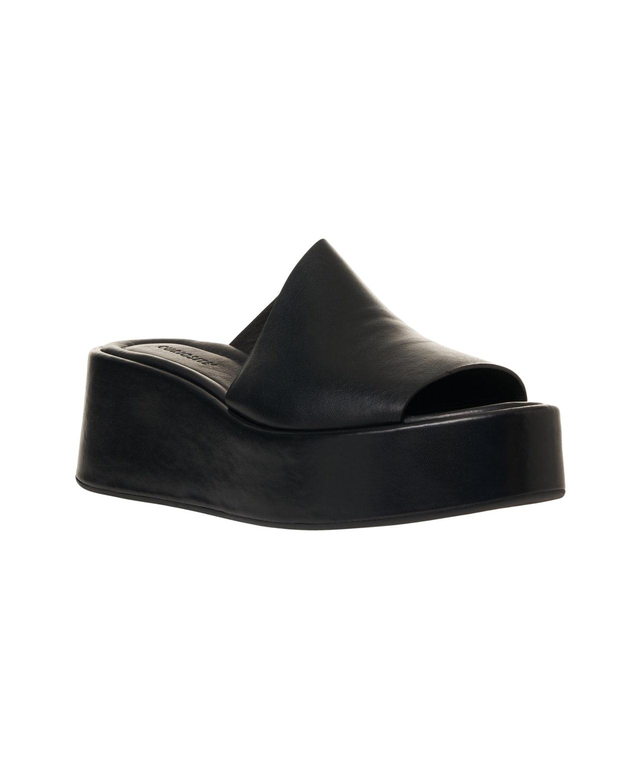 Platform sabot in leather