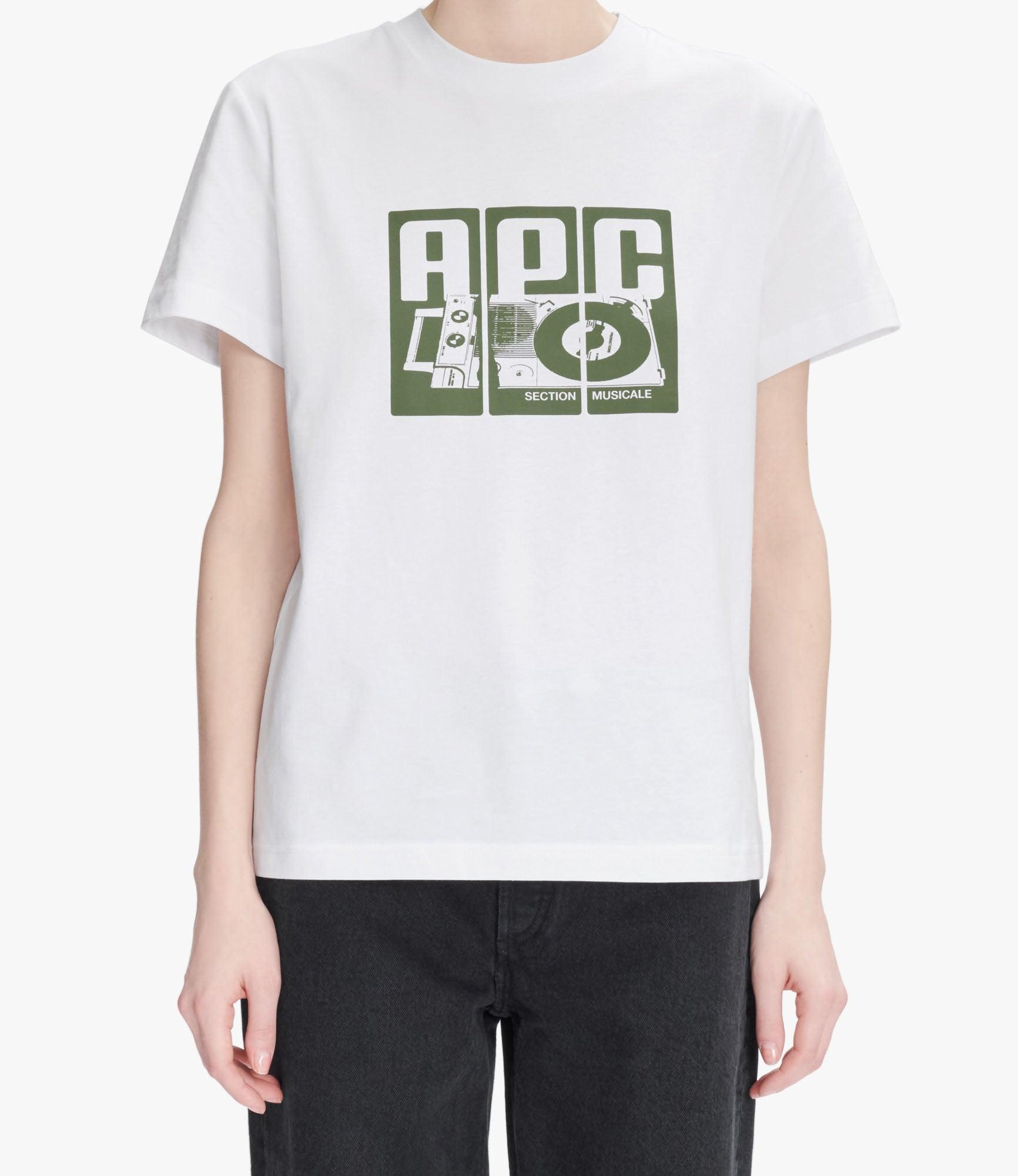 - Unisex piece. Please size down 1 size for regular fit.- Smooth and heavyweight material (180 g). - Straight cut. - Crew neck. - Khaki turntable and A.P.C. logo printed in front. - 100% organic cotton.