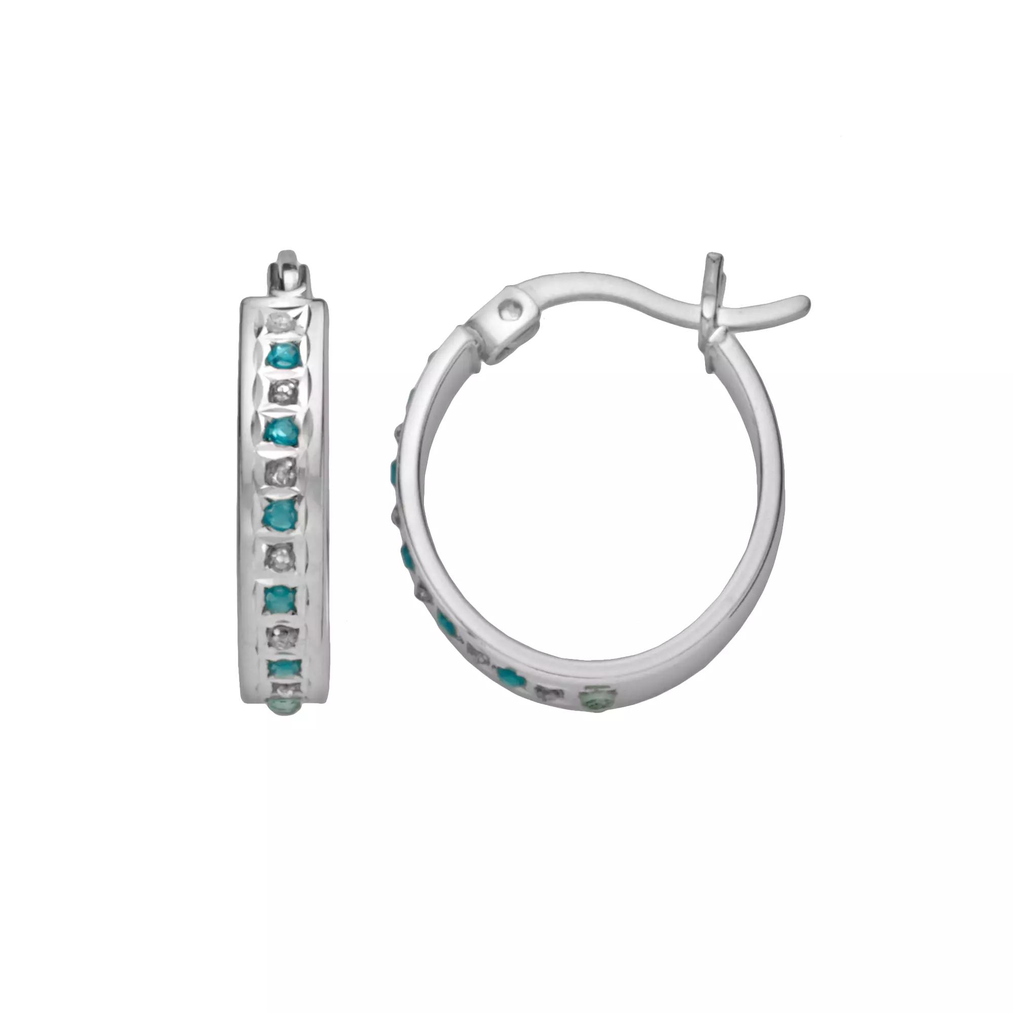 Add a splash of color to your jewelry collection wth these oval hoop earrings. These platinum-over-sterling silver earrings feature alternating blue topaz stones and diamond accents that are sure to dazzle.Brighten your look with these stunning oval hoop earrings. Platinum-over-sterling silverconstruction adds lasting brilliance. Details: 3/4-in. length Pierced Click-it backings Platinum over sterling silver Image(s) may be enlarged to show detail. Diamond weights are approximate. Diamond total weights may vary between .01 and .08 ct. Some diamonds have fewer than 17 facets. Gemstones may have been treated to enhance their appearance. Special care may be required. Please visit our Gemstone Treatment & Special Care Guide for more information. Size: One Size. Gender: female. Age Group: adult.