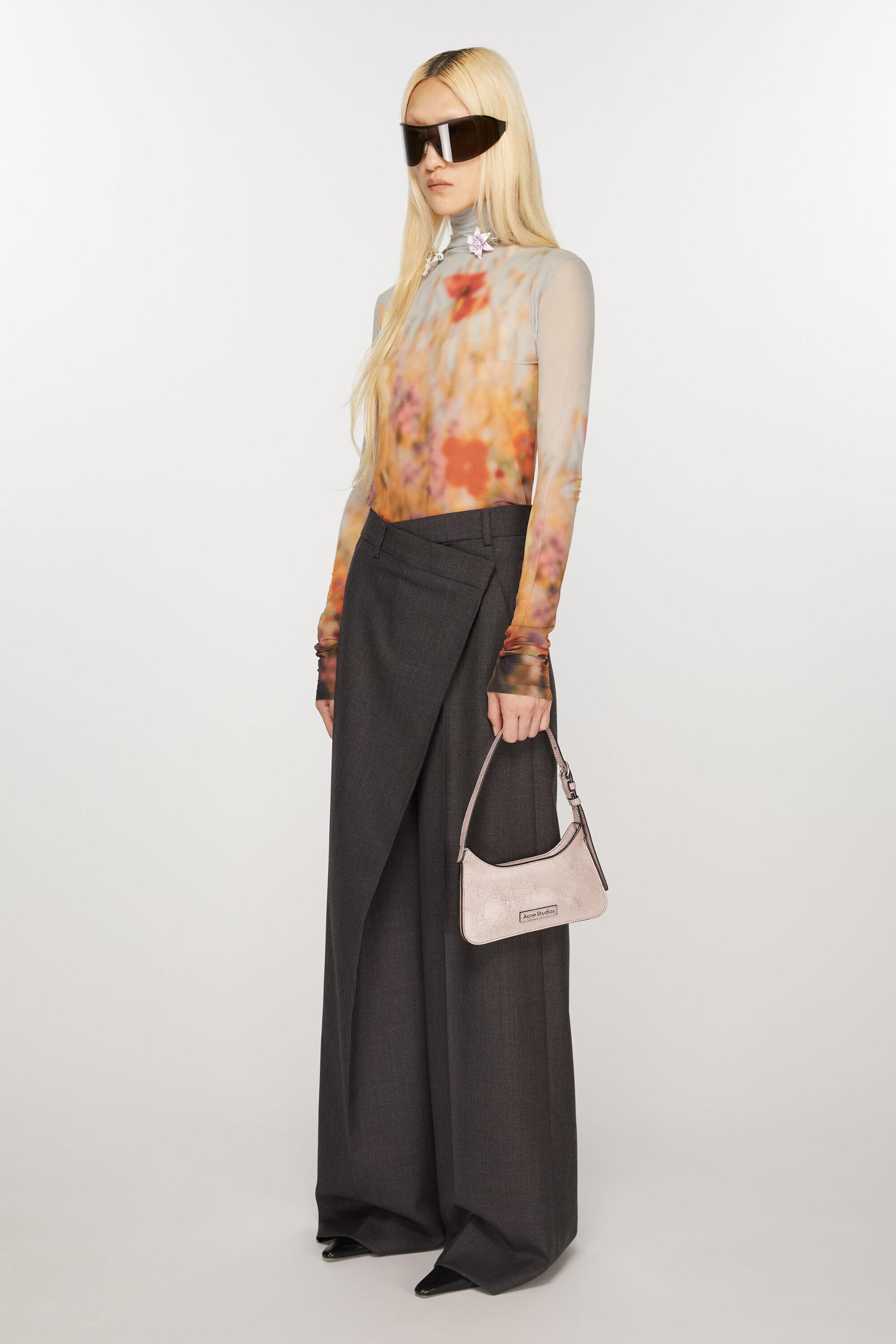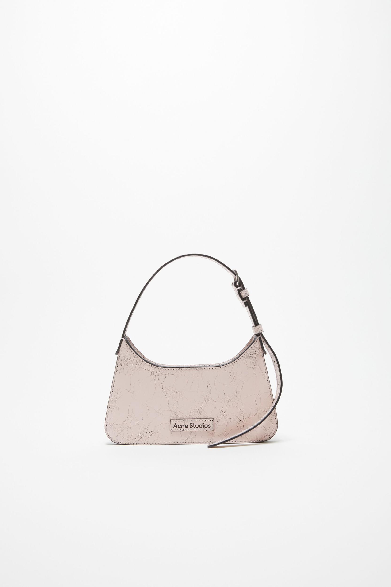 Platt micro shoulder bag features a flat minimalist silhouette, a softly curved top with structured accordion folds on the side and base. Crafted from leather with a crackled finish. Complete with a leather Acne Studios logo on the front and a decorative removable mirror on the back. FN-WN-BAGS000414