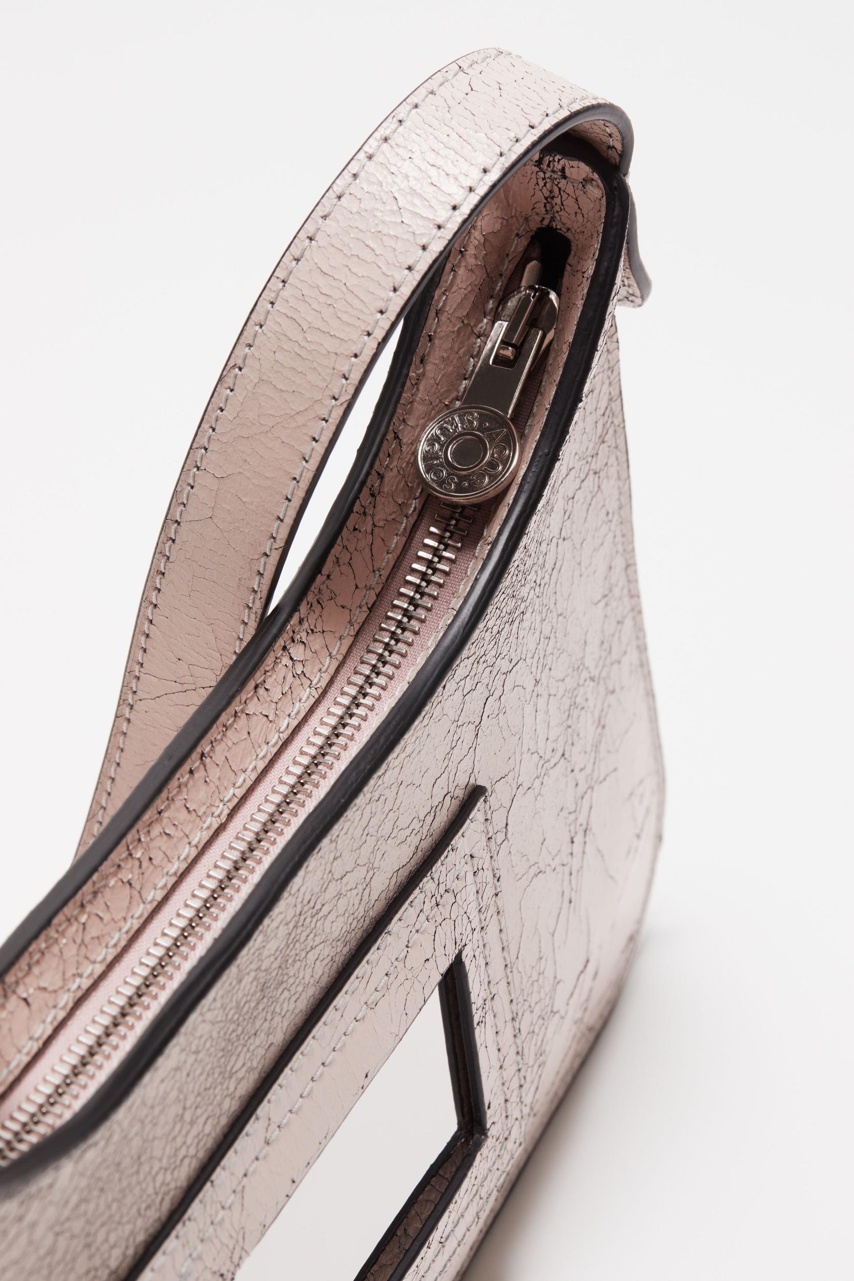 Platt mini shoulder bag features a flat minimalist silhouette, a softly curved top with structured accordion folds on the side and base. Crafted from leather with a crackled finish. Complete with a leather Acne Studios logo patch on the front and a decorative removable mirror on the back. FN-WN-BAGS000413