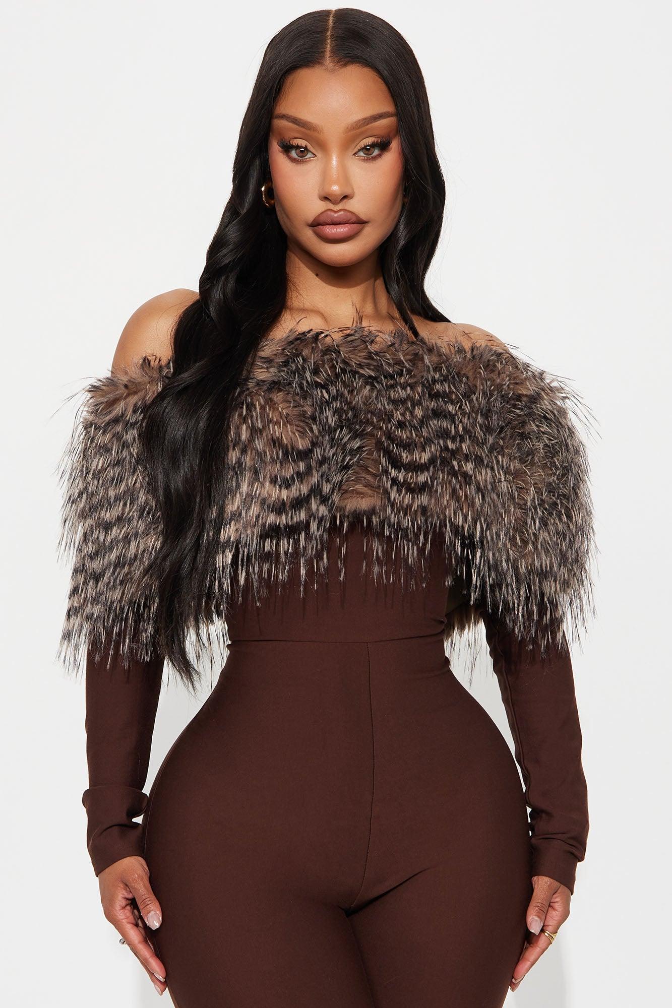 Play Nice Fur Trim Skinny Leg Jumpsuit - Chocolate Female