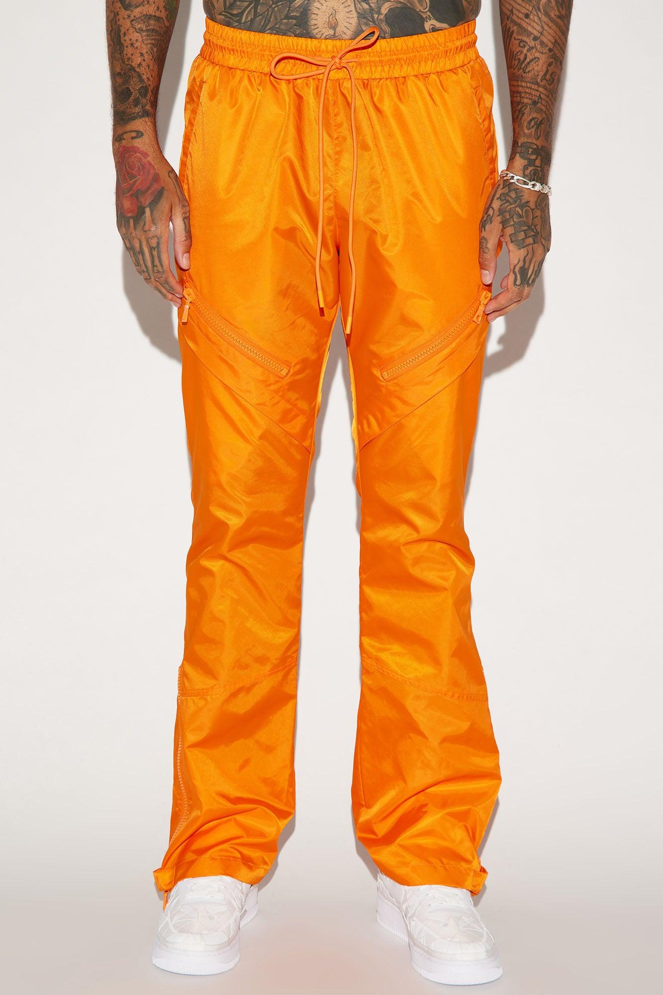 Play The Track Stacked Slim Flare Nylon Pants - Orange