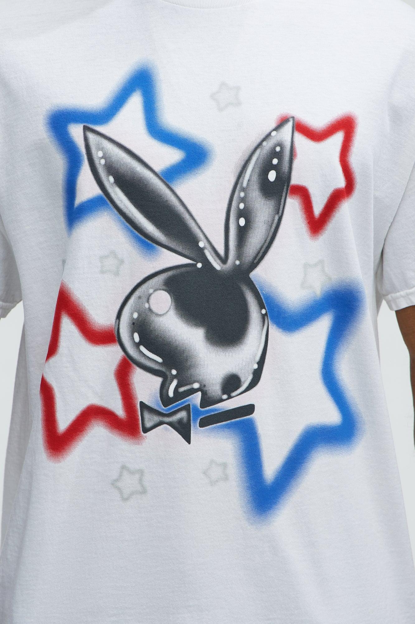 Available In White. Crewneck Short Sleeve Screen Print Playboy Bunny Graphic Details 100% Cotton Disclaimer: Garment dyed must wash before wearing. Any imperfections or color difference have to be considered sought-after effects and not defects. This garment could lose dye, so we recommend to wash the garment separately before wearing it. Turn inside out before washing do not dry under sunlight Imported