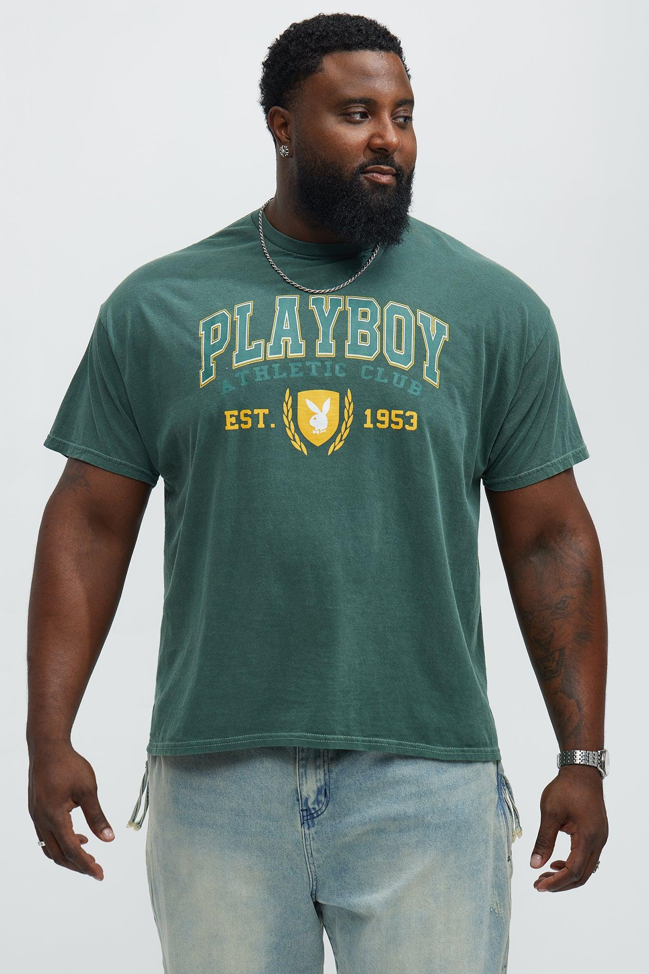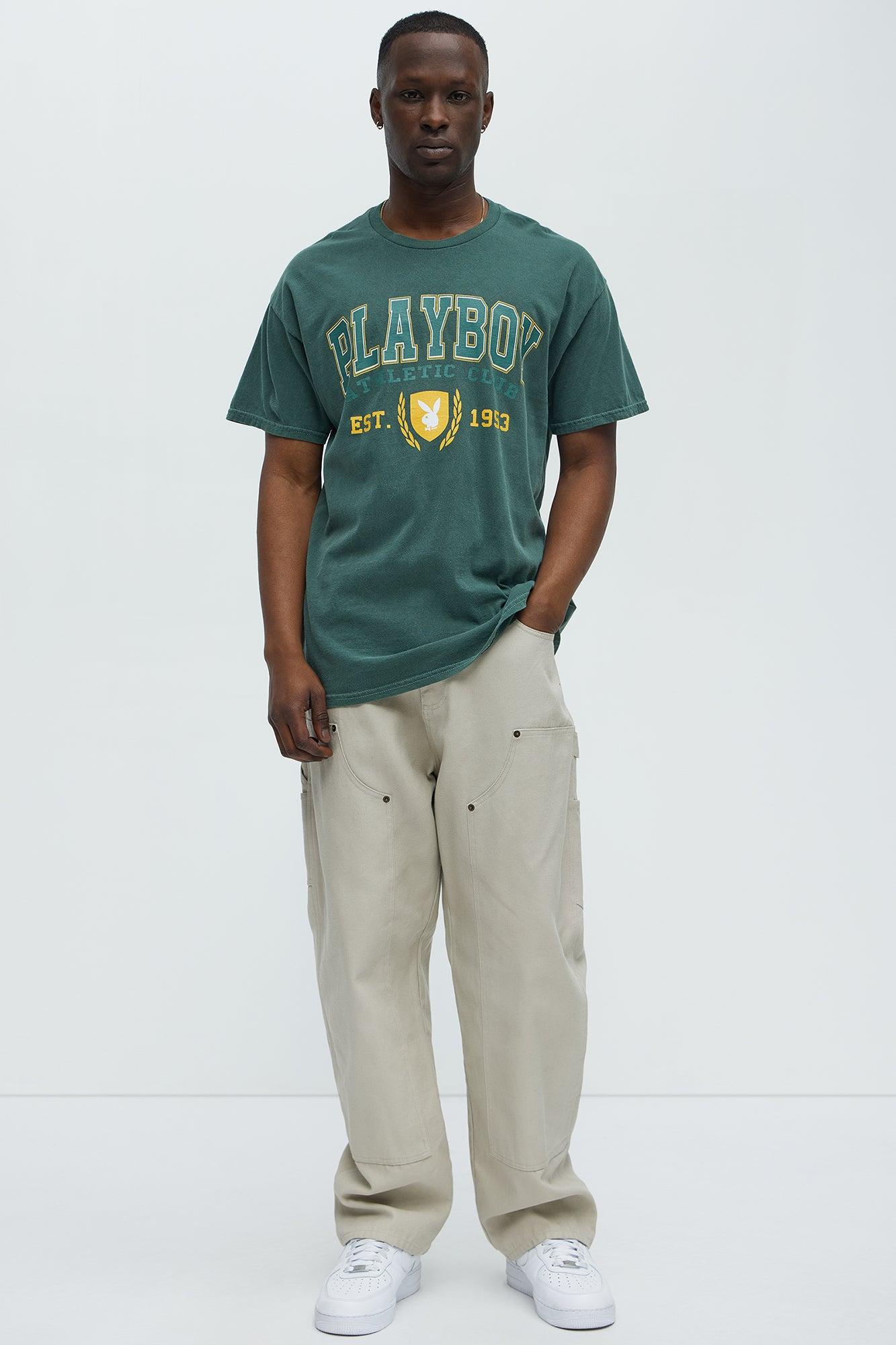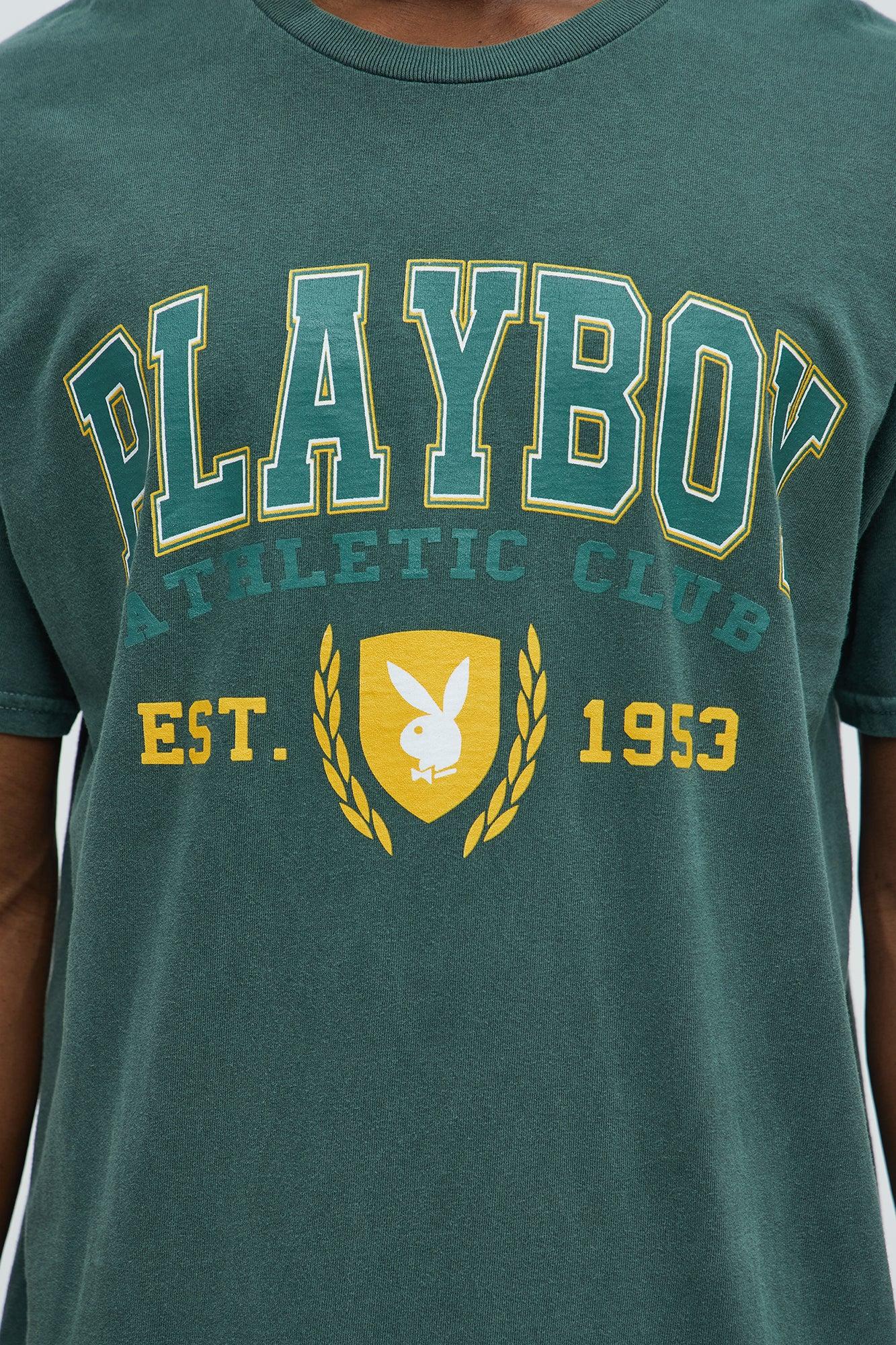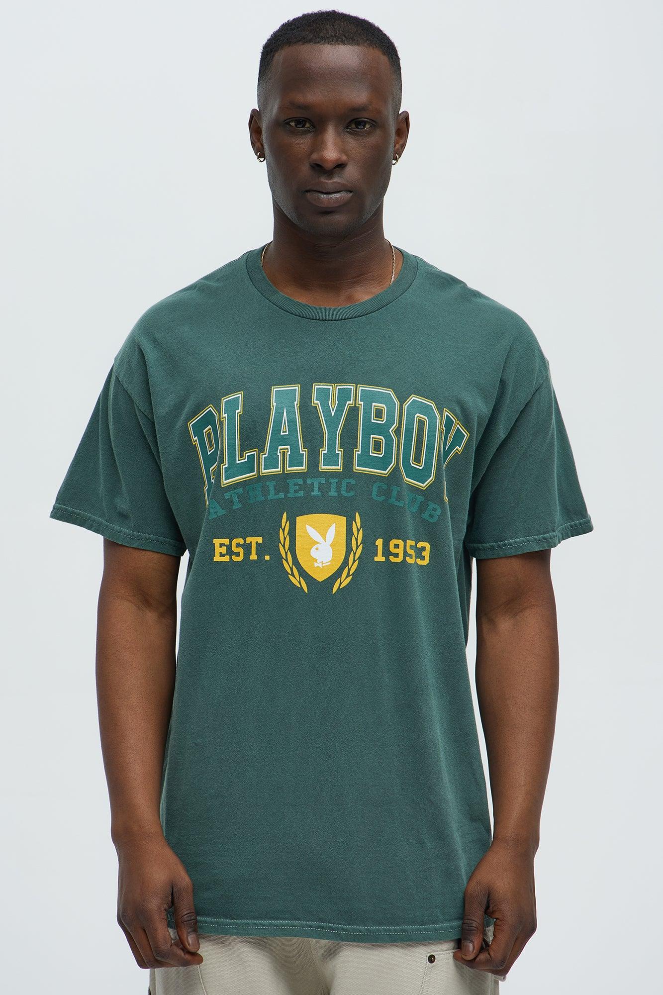Available In Green. Crewneck Short Sleeve Screen Print Playboy Athletic Club Graphic Details 100% Cotton Disclaimer: Garment dyed must wash before wearing. Any imperfections or color difference have to be considered sought-after effects and not defects. This garment could lose dye, so we recommend to wash the garment separately before wearing it. Turn inside out before washing do not dry under sunlight Imported
