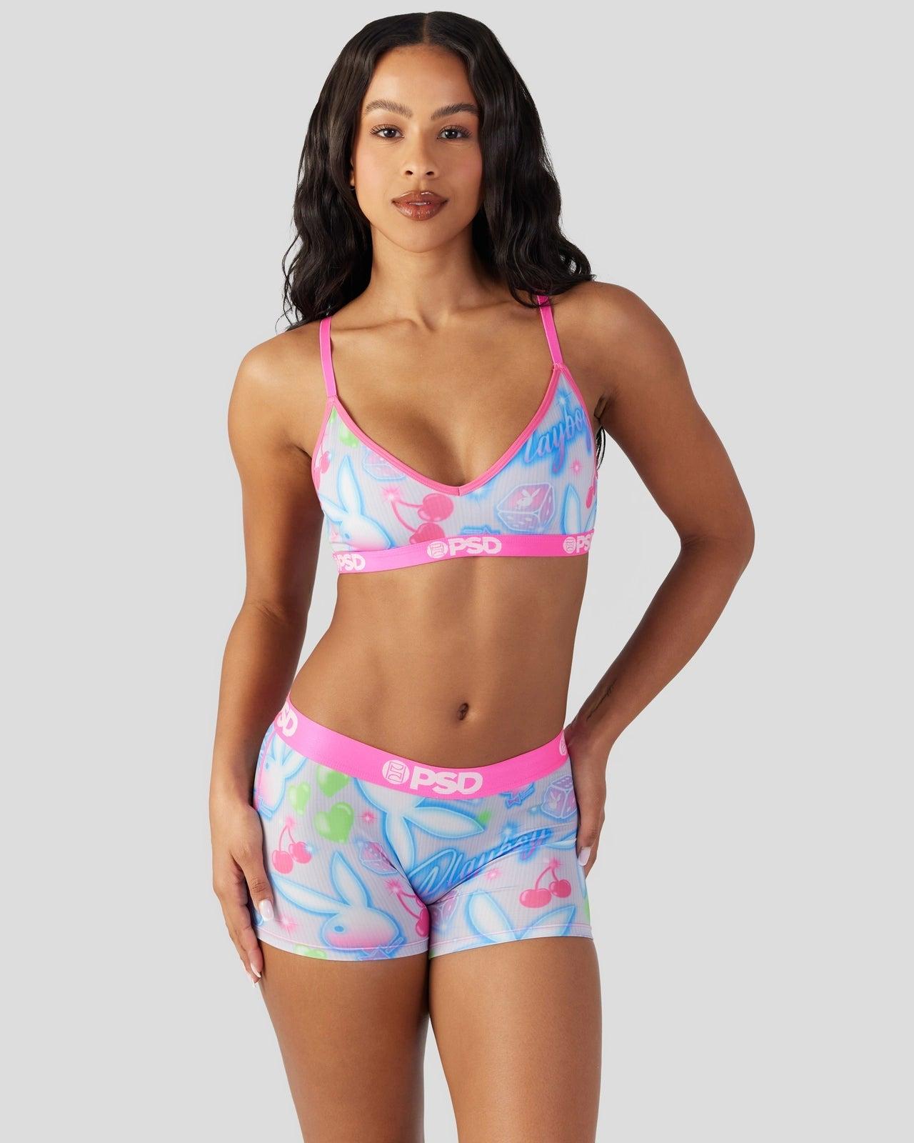 New from Playboy x PSD! Featuring a cute and colorful print perfect for warm-weather seasons, and made of soft and silky fabric, the Summer V-Neck Bralette is light and breathable so you barely feel like it’s there. It gives you full coverage and medium support for those days when you need to wear a bra but really don't want to.