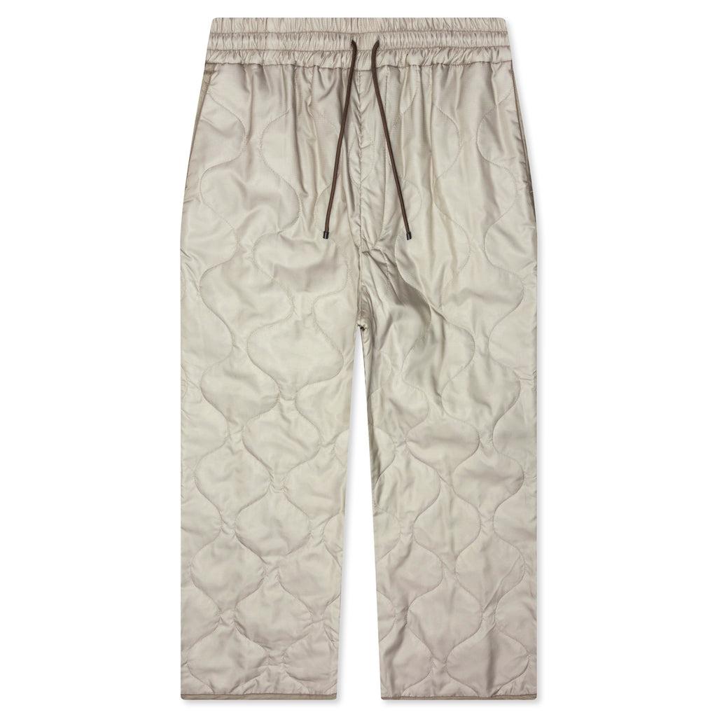 The Pleaded Padded Pants in Sand, are quilted ripstop pants designed for both style and functionality. Featuring side slit pockets and a back zip pocket, and an elasticated waistband with a drawstring for a customized fit and maximum comfort. 69% Nylon, 31% Polyester Side slit pockets & back zip pocket Elasticated waistband with drawstring Quilted Nylon Water Repellant Style No: 241-020956-8502-101