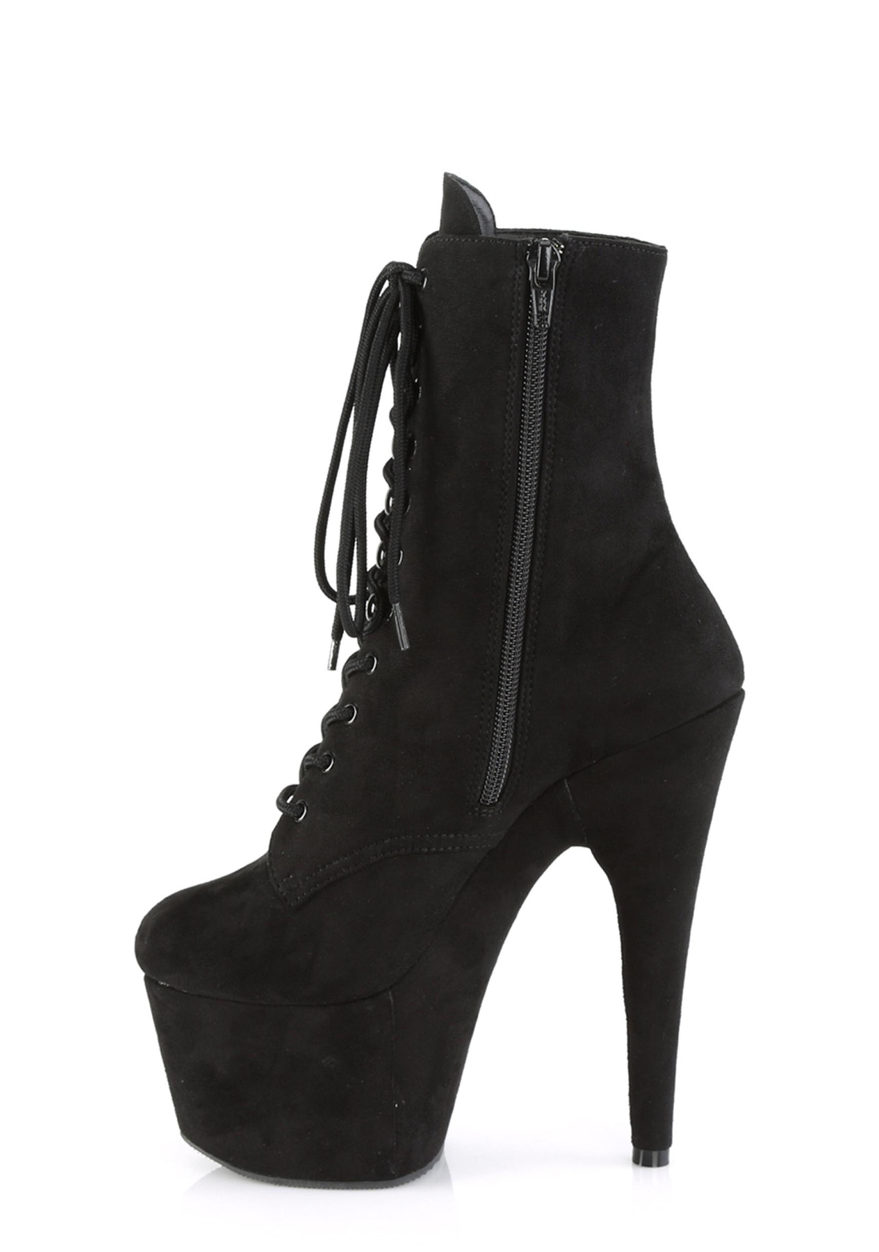 Free, fast shipping on Adore-1020 Lace-Up Ankle Boots - Black Suede at Dolls Kill, an online boutique for punk and rock fashion. Shop Pleaser platform heels, stripper heels, and thigh high boots here.