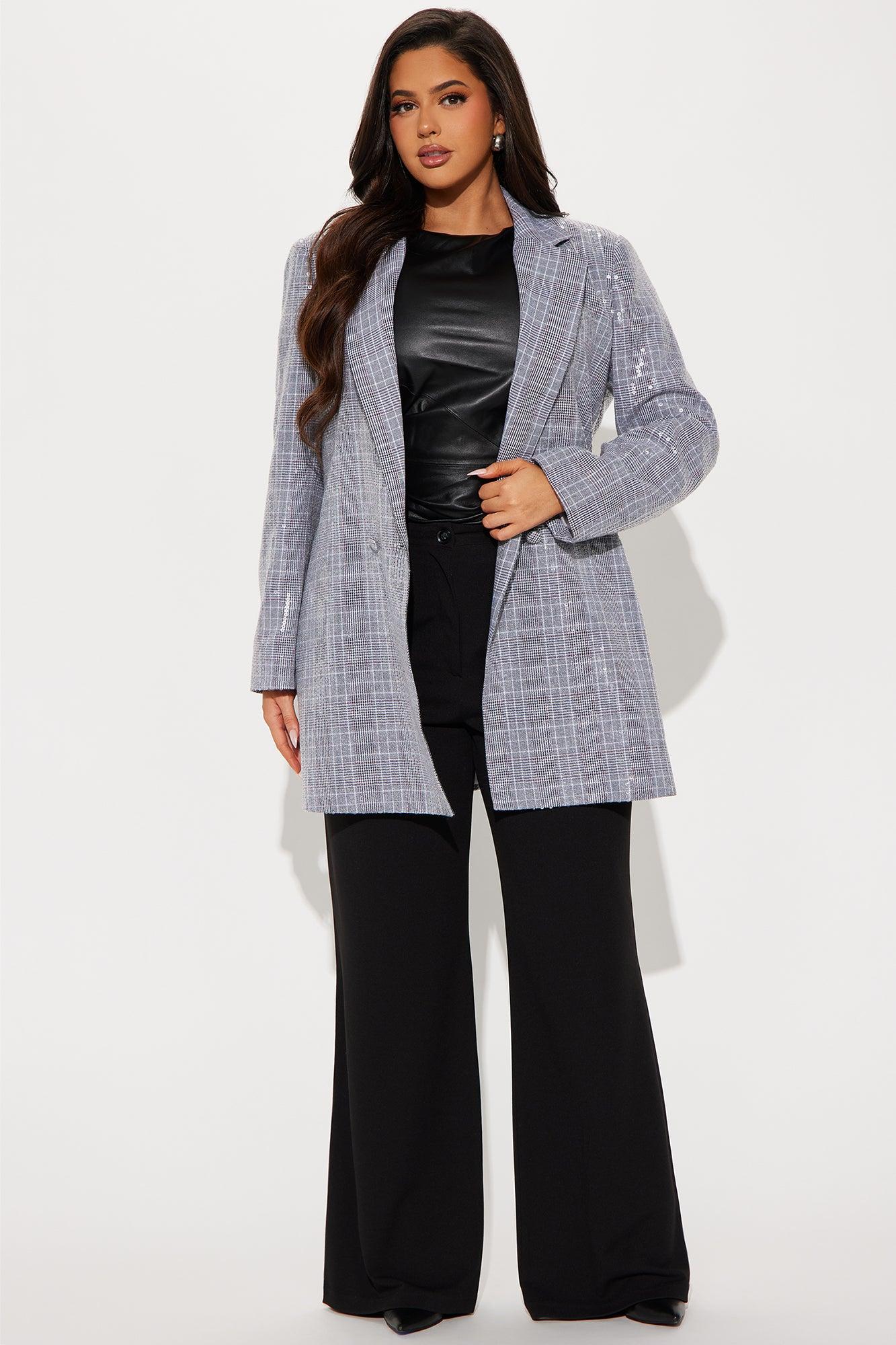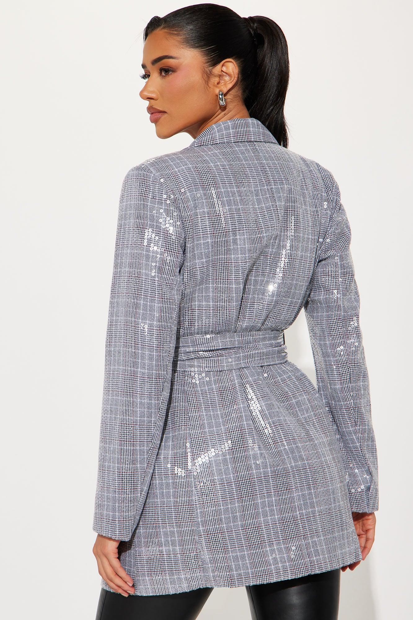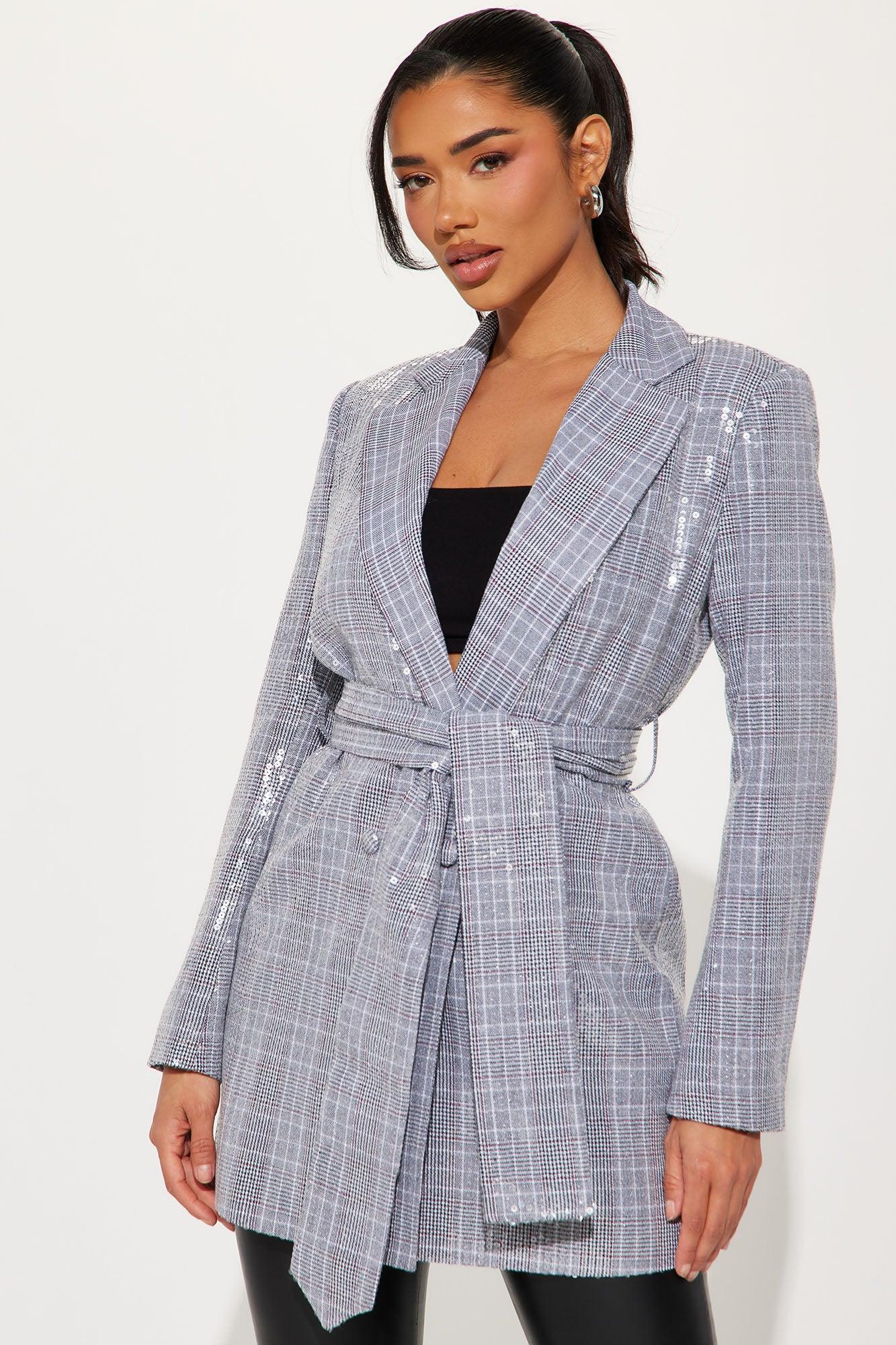 Available In Grey. Blazer Lapel Collar Long Sleeve Sequin Belted Pockets Fully Lined Pair with "Pleasure Doing Business Sequin Plaid Pant" Disclaimer: Plaid Placement Will Vary. Shell: 65% Cotton 35% Polyester Lining: 100% Polyester Imported California Proposition 65 WARNING: Cancer and Reproductive Harm - www.P65Warnings.ca.gov.