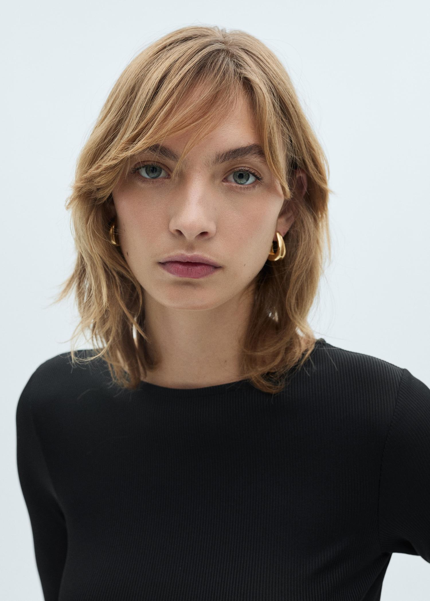 Light fabric. Evasé design. Combined design. Pleated design. Long design. Rounded neck. Long sleeve. Inside leg measurement 29.8 in. Side length 42.56 in