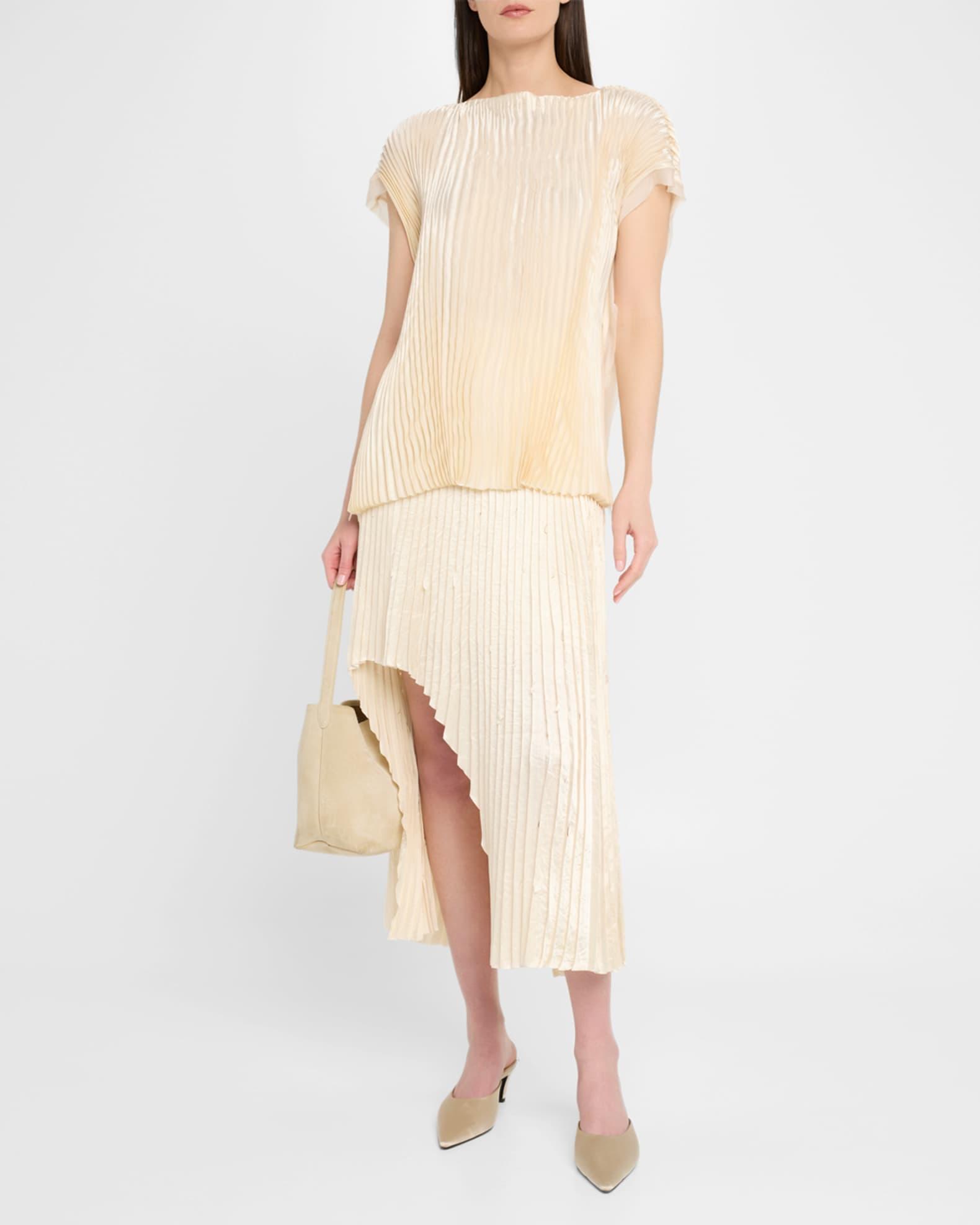 Jason Wu Collection crinkled satin skirt finished with pleating and laser-cut holes High waist High-low hem A-line silhouette Invisble back zip Acetate Imported
