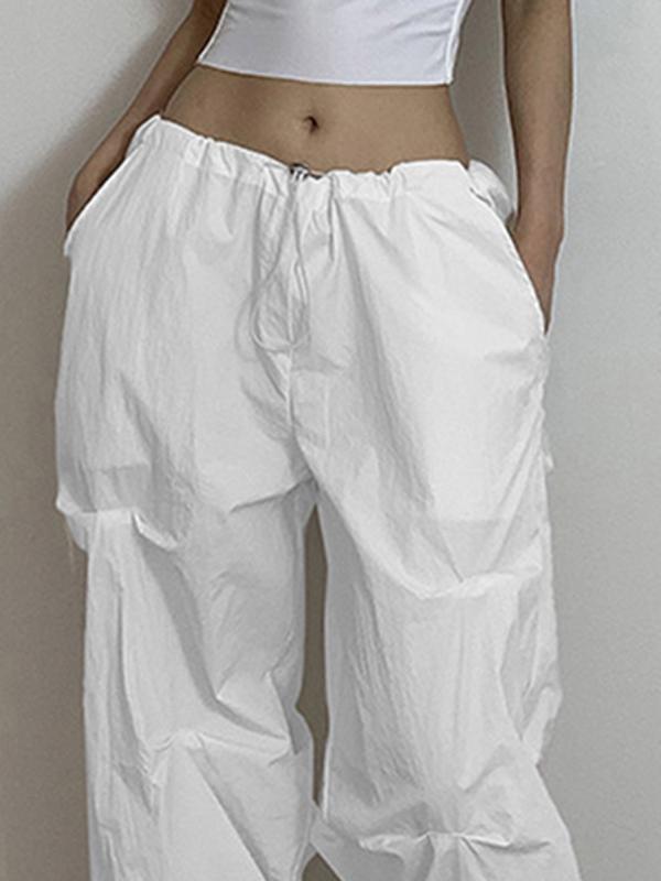 Pleated Drawstring Bound Feet Loose Cargo Pants