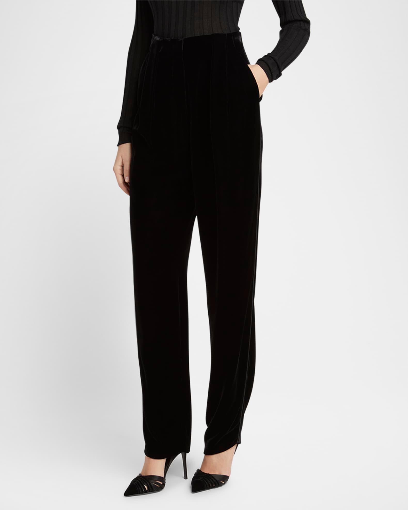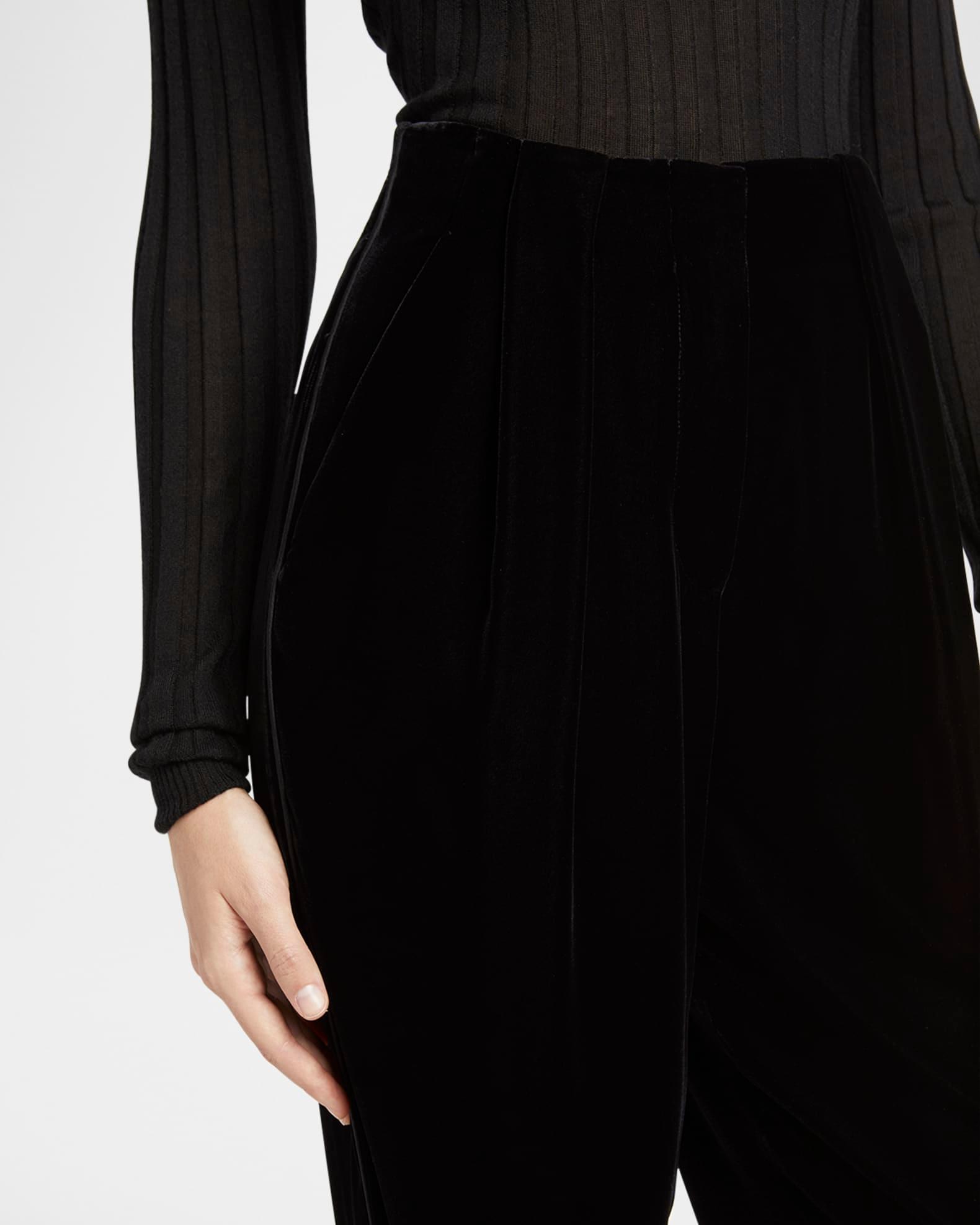 Pleated High-Rise Velvet Trousers