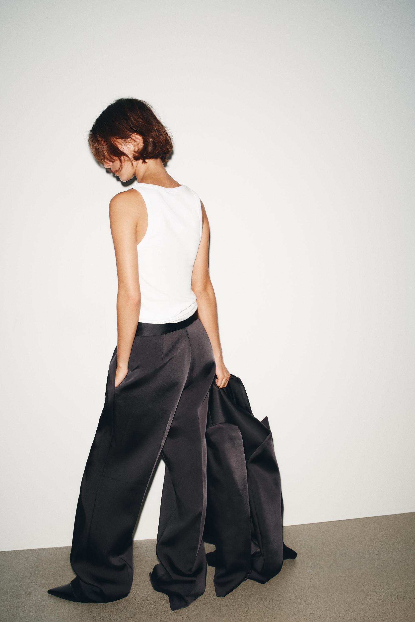 PLEATED SATIN HIGH-WAISTED PANTS