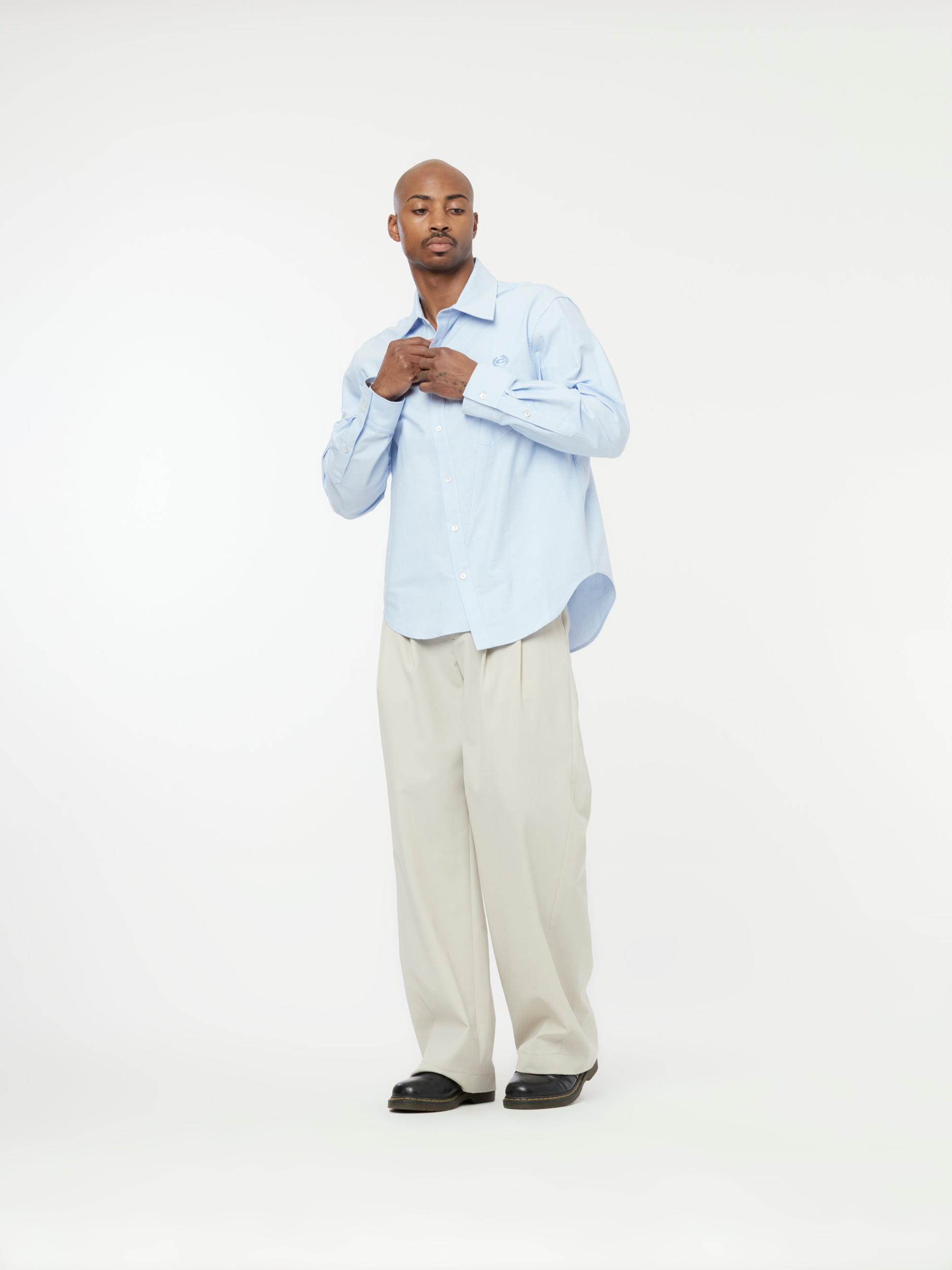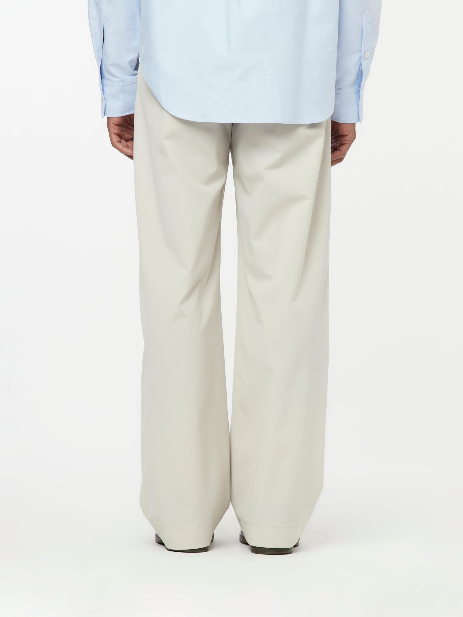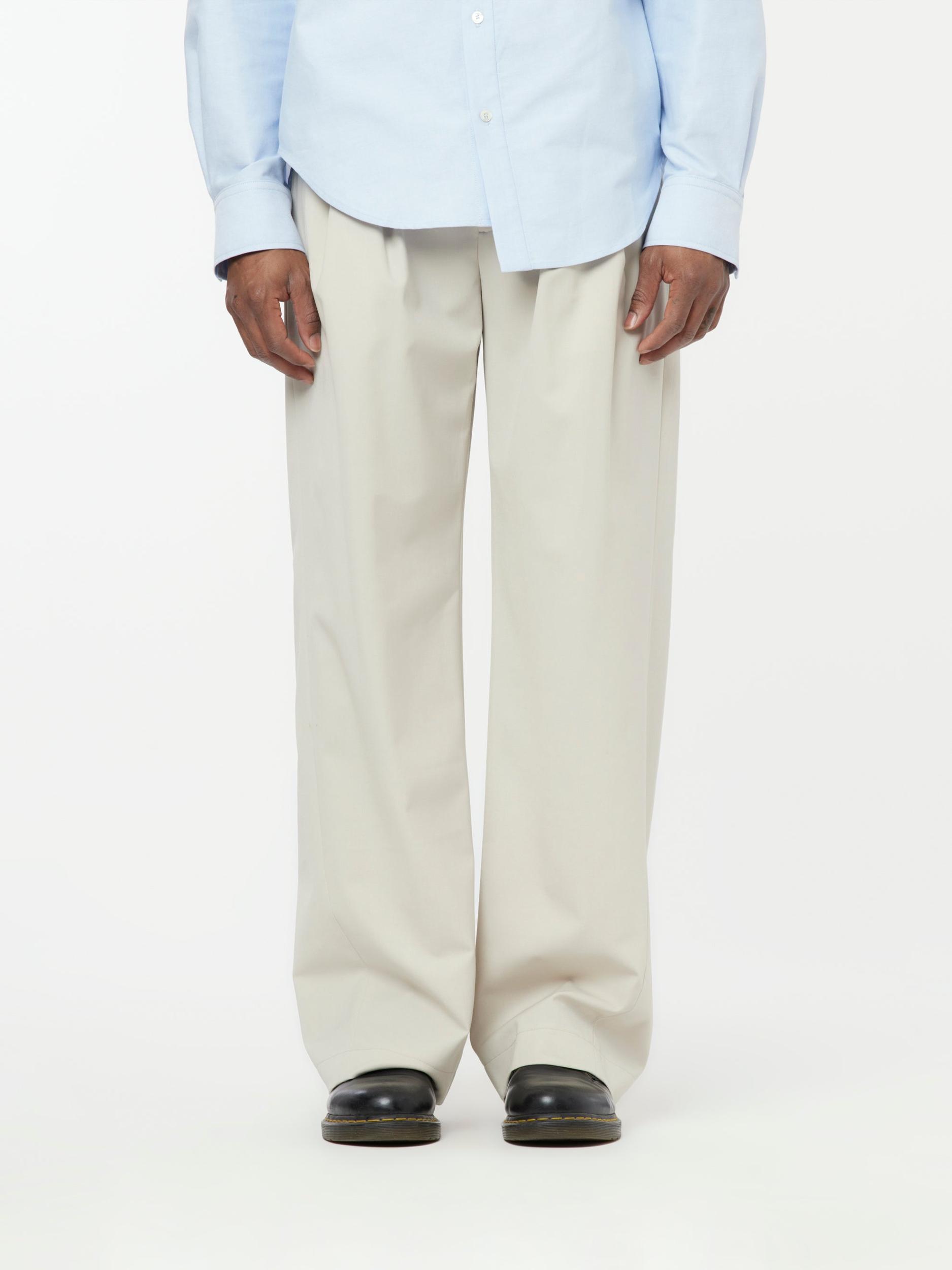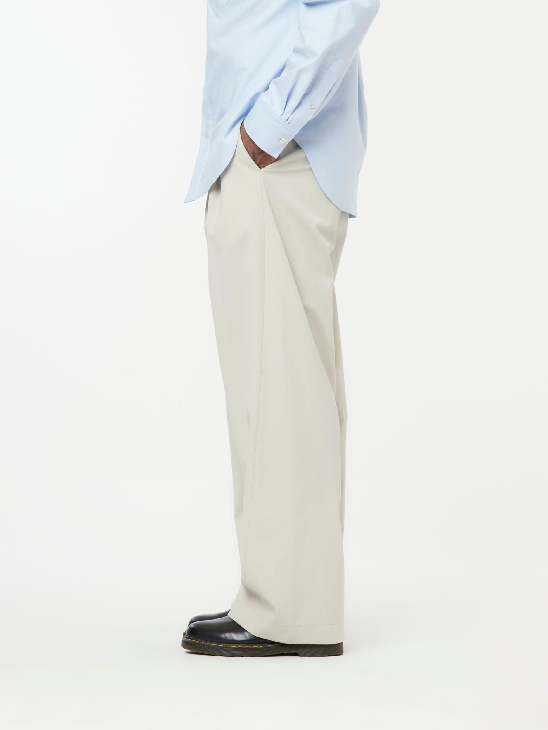 The Commission NYC Pleated Shift Trouser is meticulously crafted from a premium blend of polyester and wool twill. These bottoms boast a refined silhouette, featuring classic belt loops for added versatility and a polished look. Model is 6'0 wearing size M