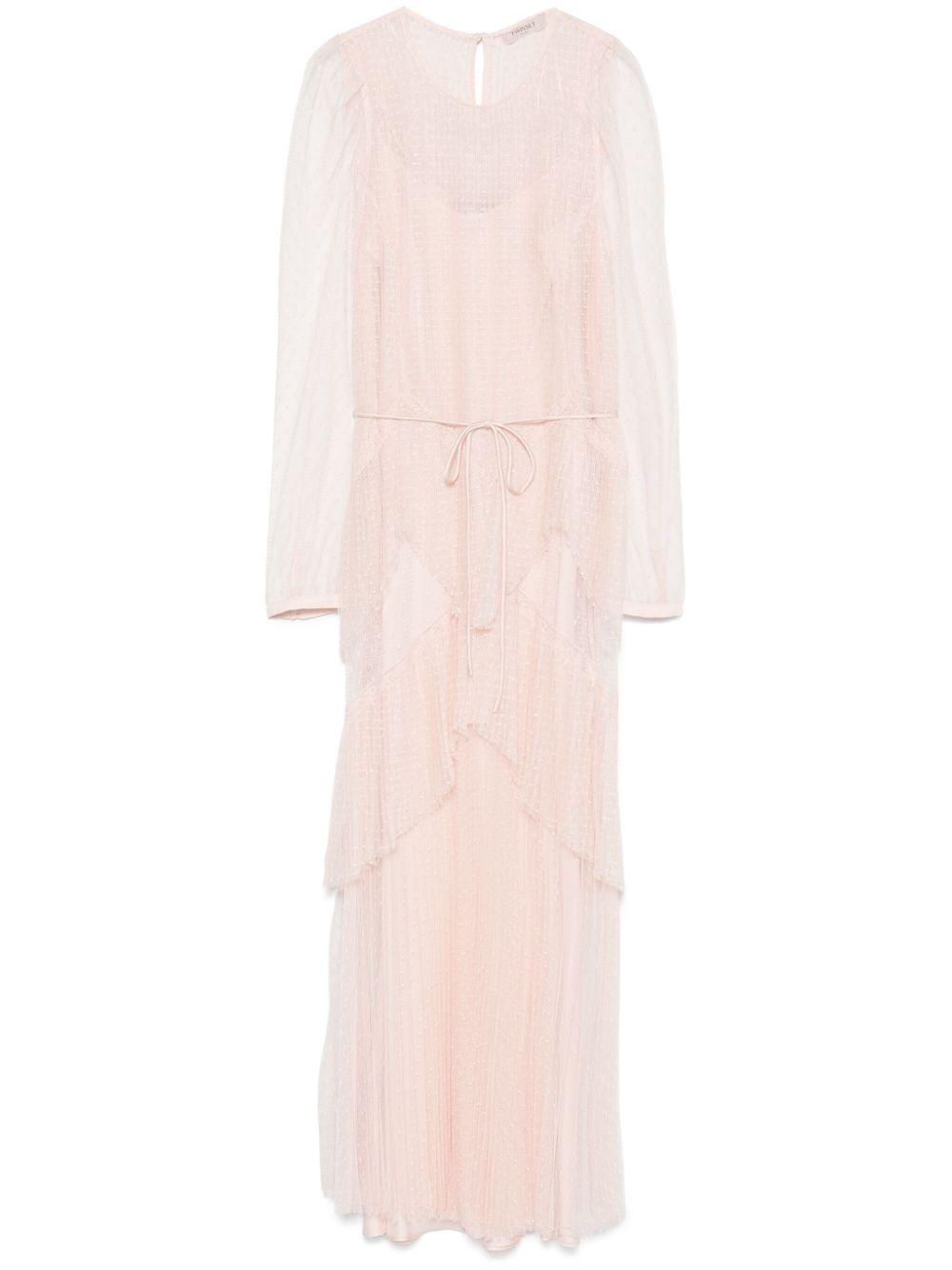 pleated tulle maxi dress