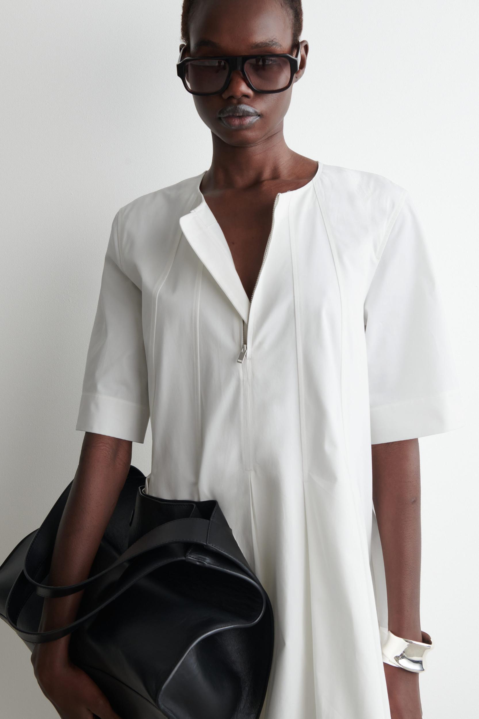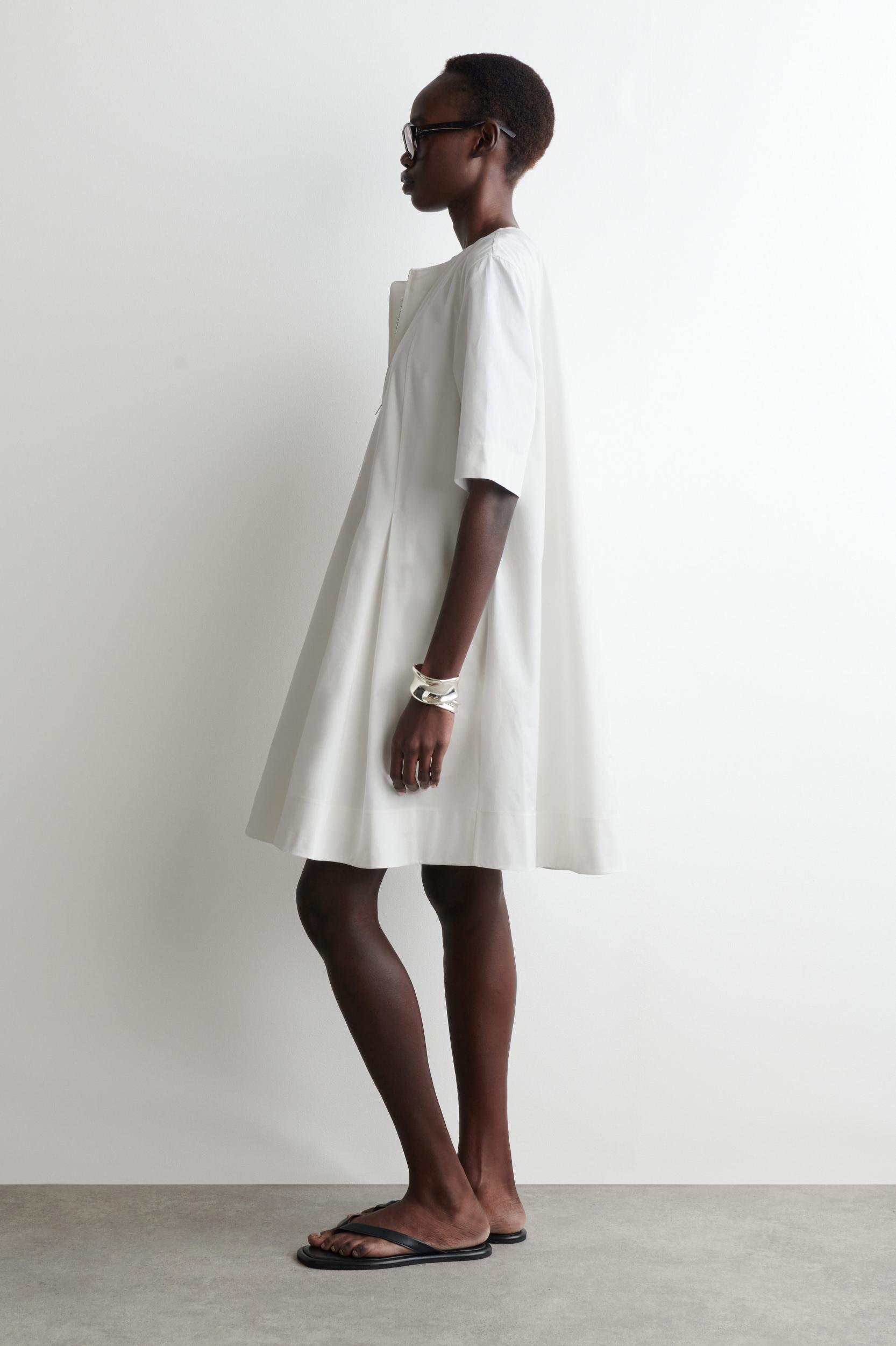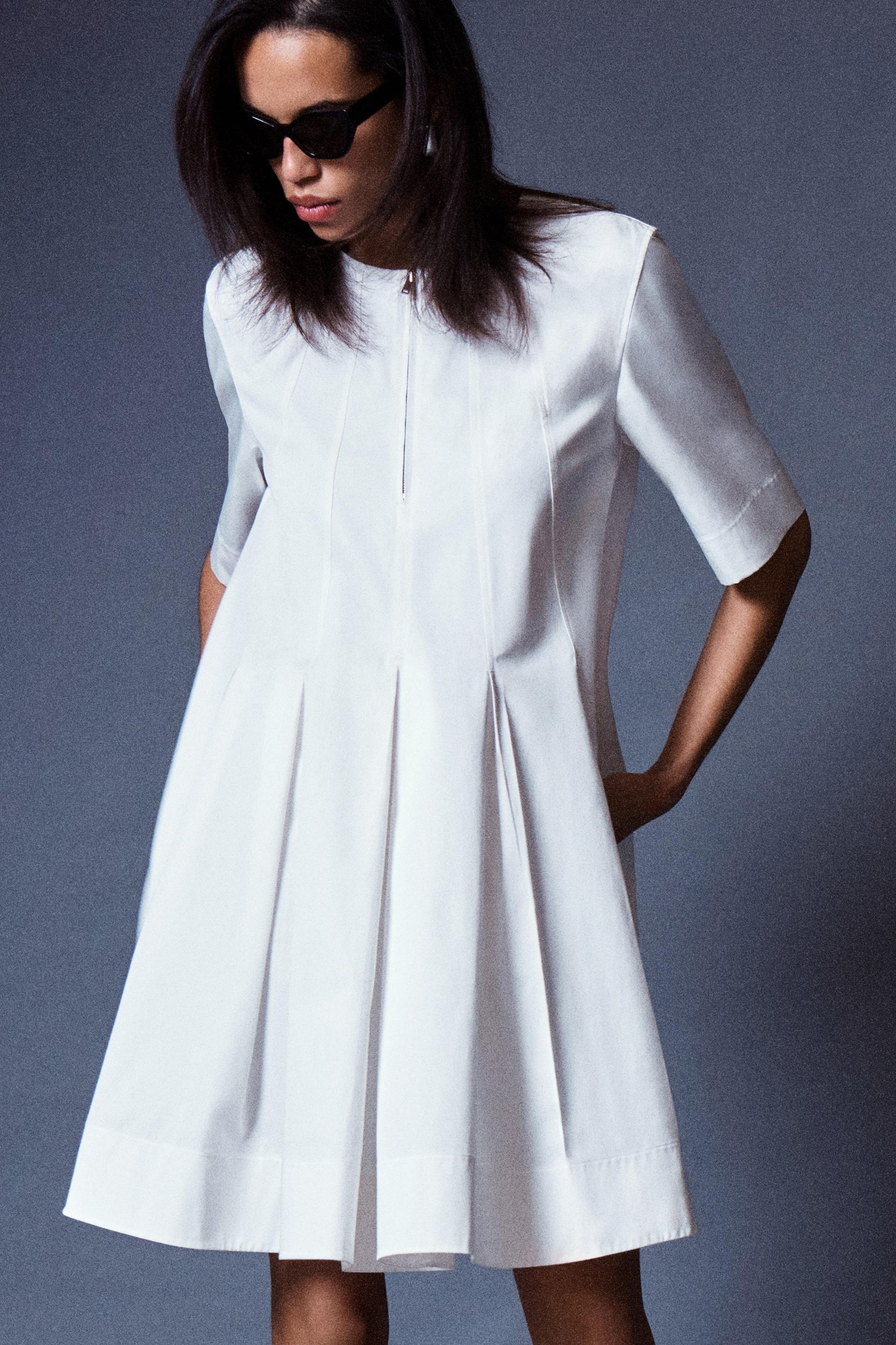A refined take on utility codes, this dress is designed with stitched panels that fall into box pleats. It's crafted from soft cotton in a terracotta hue and features a silver-tone zip, short sleeves and discreet side pockets. Regular fitZip closure Shell: 100% Cotton. Excluding trims / Machine wash Back length of size 6 is 35.24” / Model wears a size 6