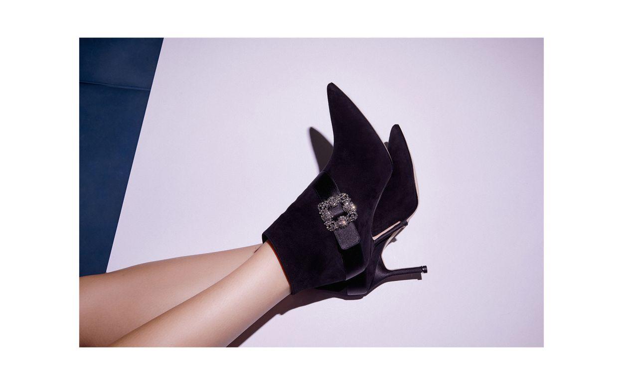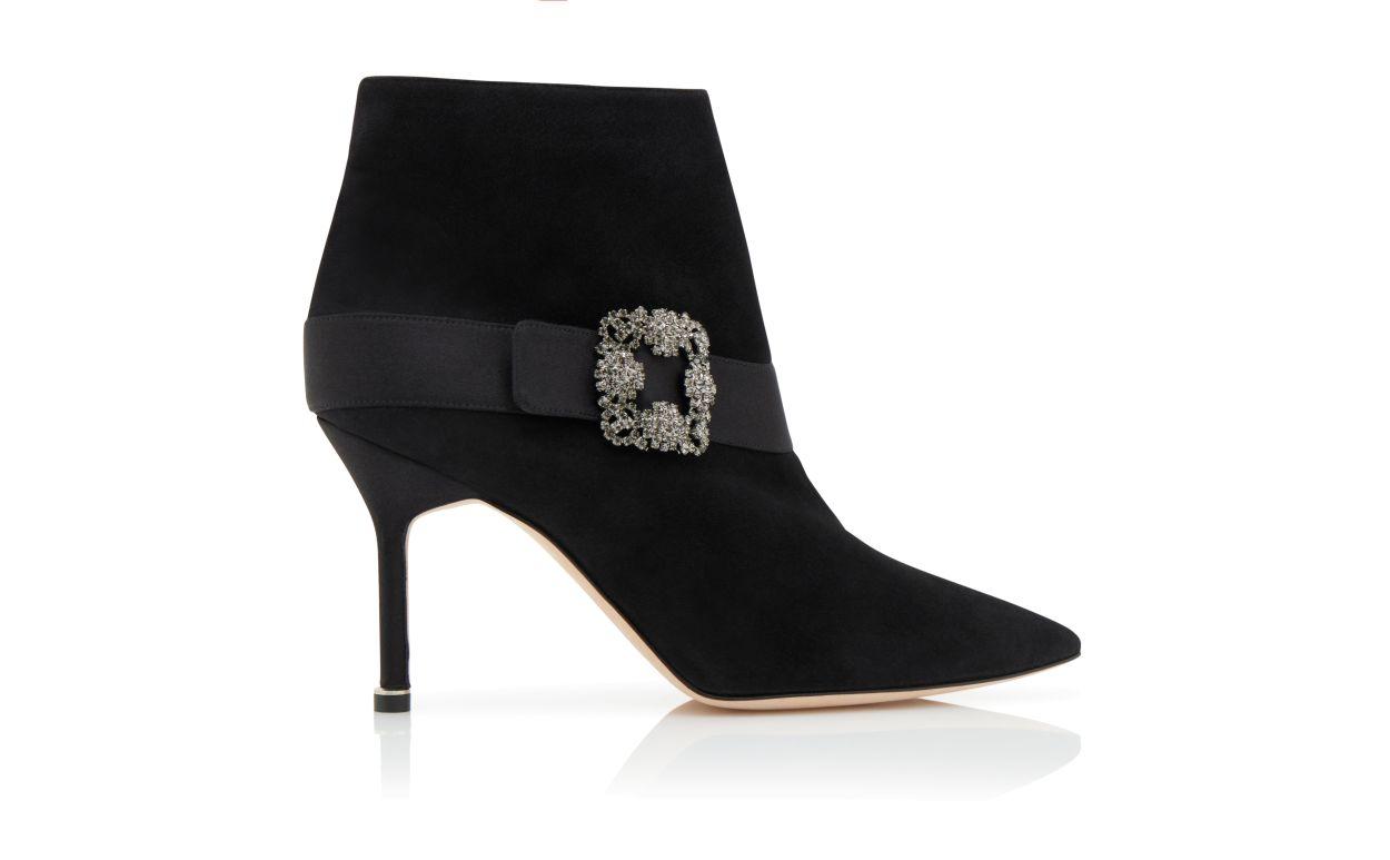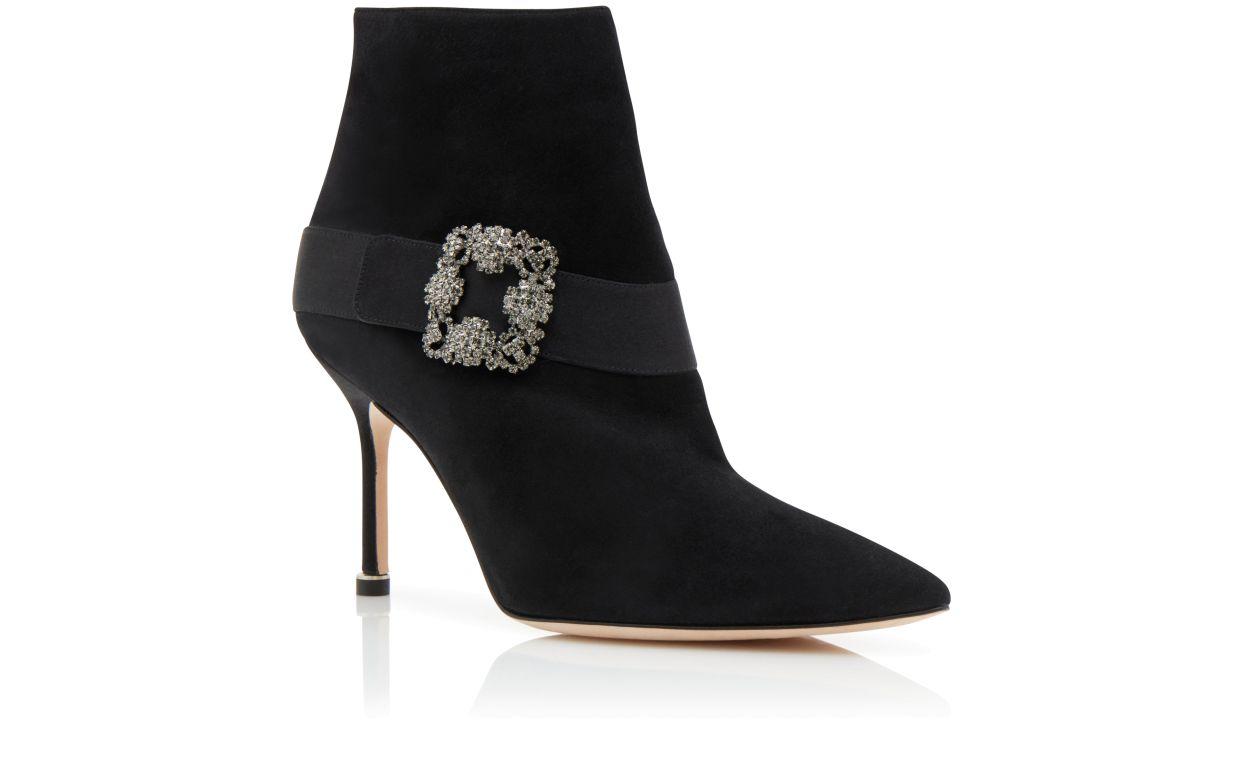 PLINIANU Black Suede Jewel Buckle Ankle Boots