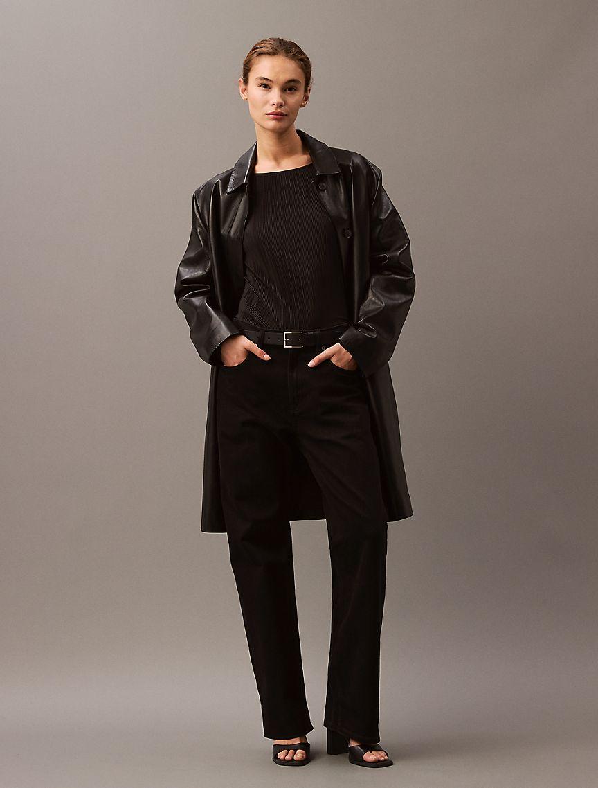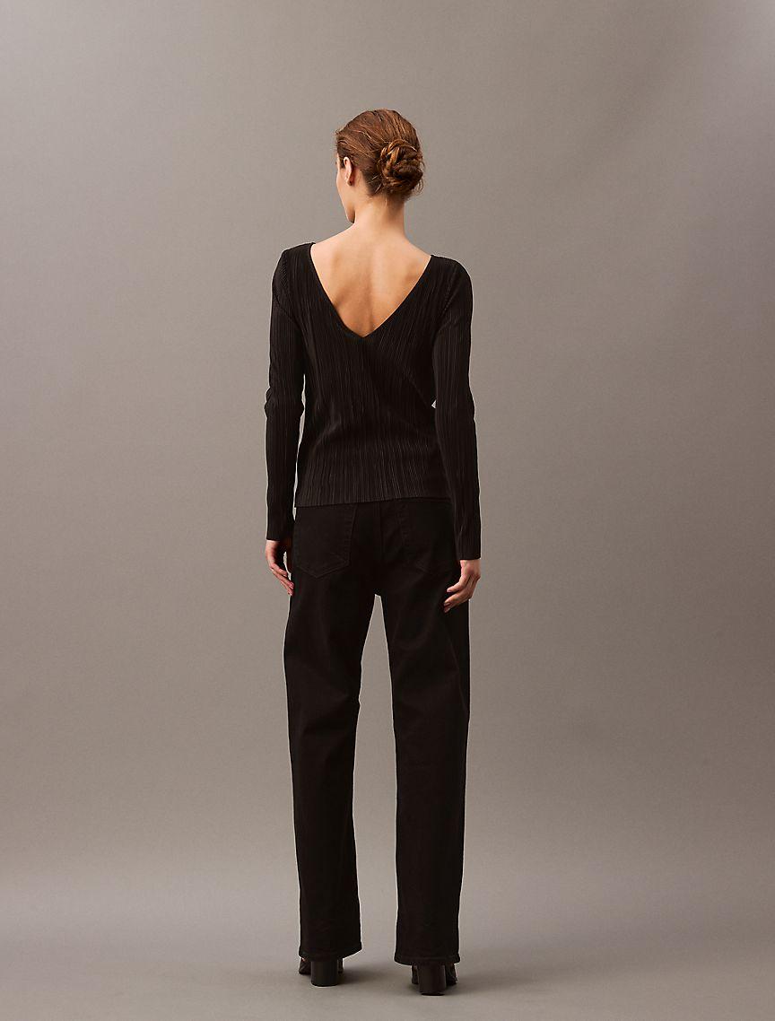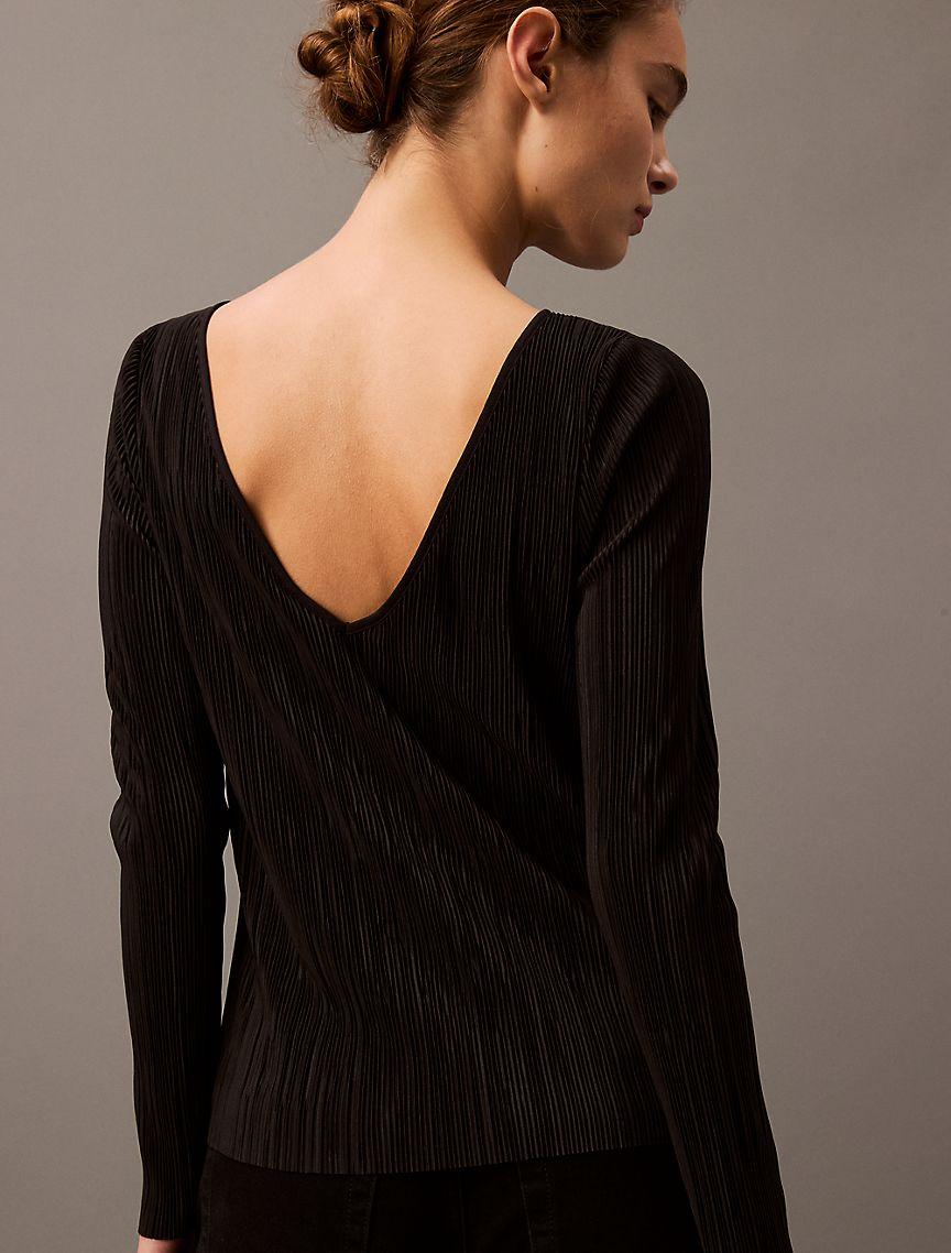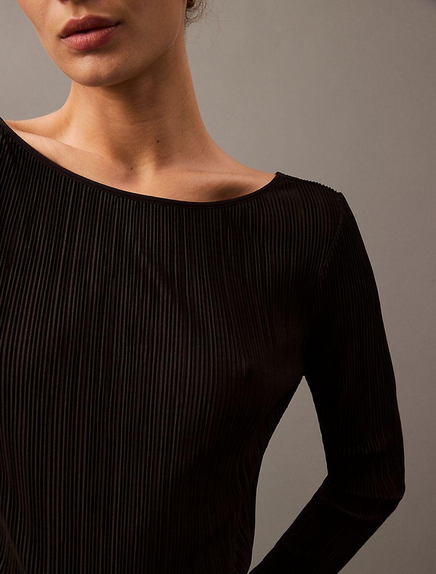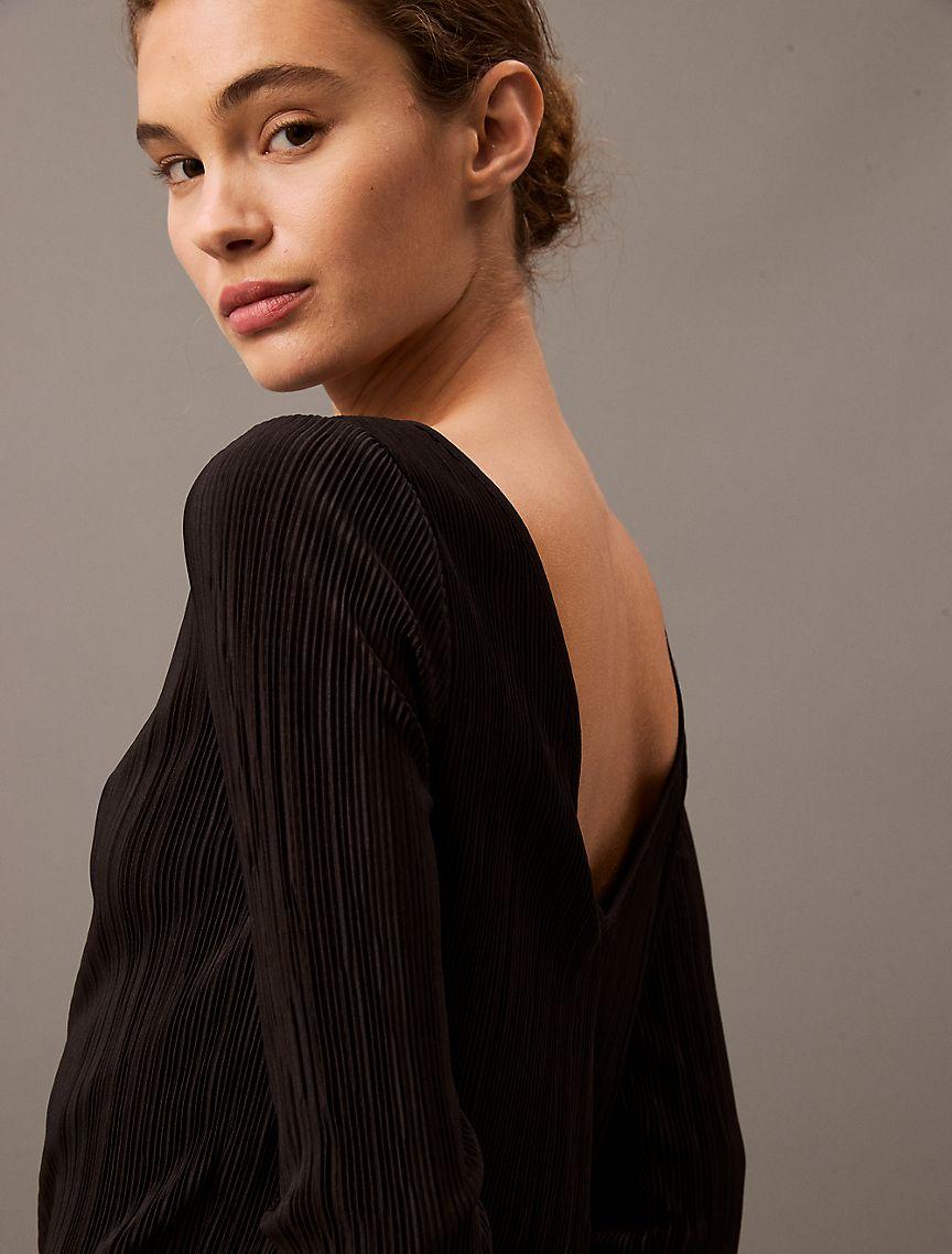 Calvin Klein Womens Plisse Low Back Slim T-Shirt - Black