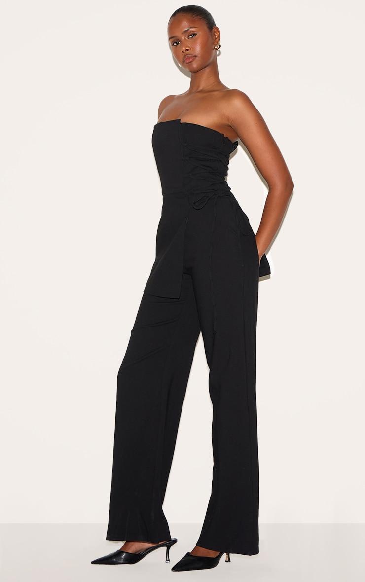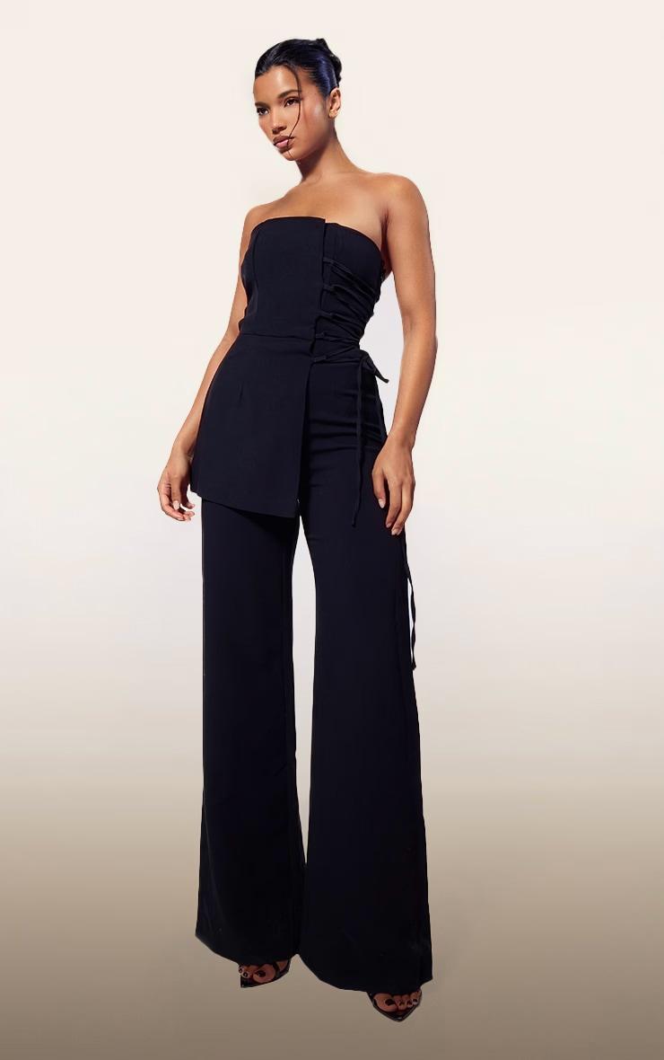 For instant elevation, make it PLT label.Switch up your occasion style game with an extra touch of chic in this PLT Label black overlay panel lace up tailored jumpsuit. Brought to you in a black hue material with an overlay panel design, lace up detailing and a chic tailored fit, what more could you ask for? Style this tailored jumpsuit with your highest heels and some gold accessories for a look that will make heads turn wherever you go. Length approx 132cm/52inch (Based on a sample size UK 8) Model wears size UK 8/ EU 36/ AUS 8/ US 4Model Height - 5ft 6inchp]:!mb-0inch>Category: Jumpsuits & PlaysuitsProduct type: Tailored JumpsuitColor: BlackMaterial: Tailored WovenDesign: PlainNeckline: BandeauSleeves: SleevelessOccasion: Evening