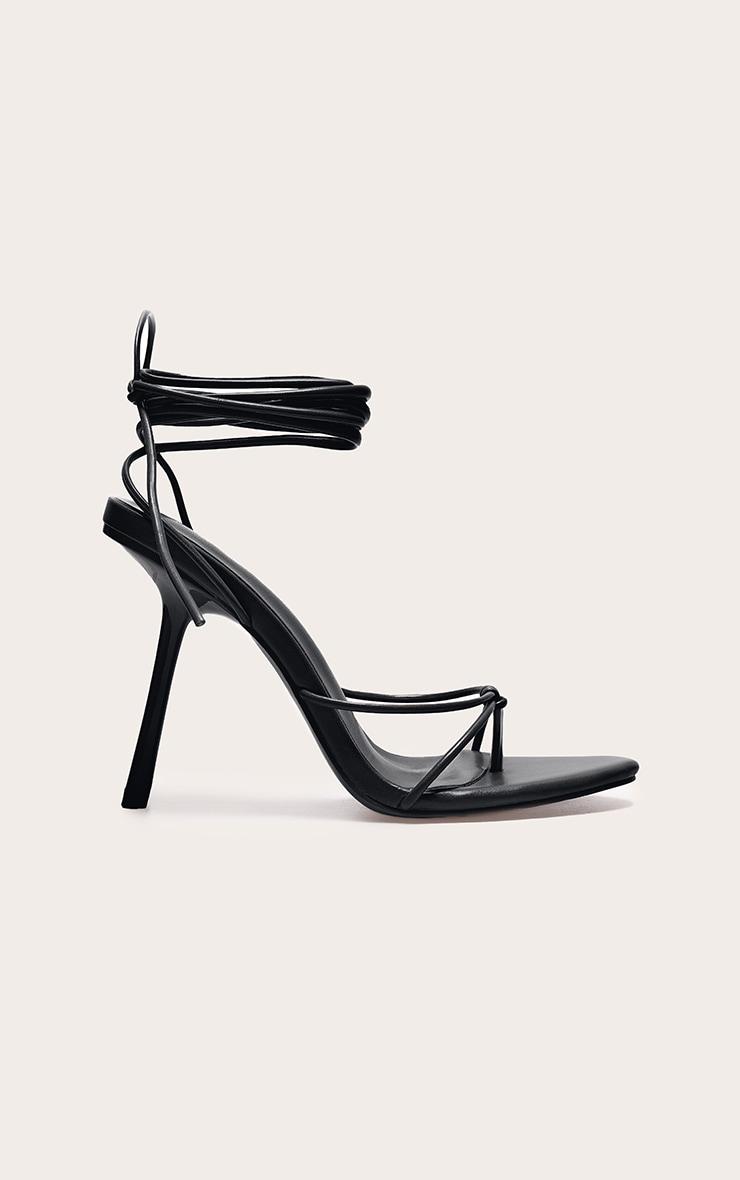 PLT Label Black Strappy Tie Thong Heel